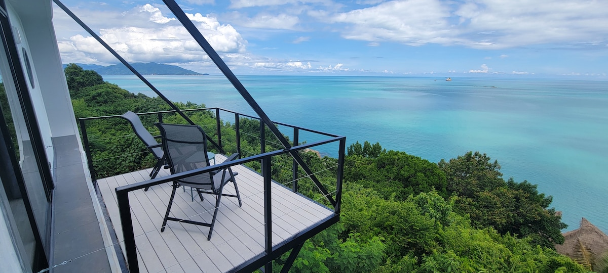 Set in Koh Samui’s most prestigious Chong Mon peninsula this home from home features incredible ocean views, a bedroom with TV, Kitchen come living room with sofa and outdoor deck area with a workstation and ensuite bathroom with hot water and air-conditioning all inside 30 square meters of space. With white sandy beaches, restaurants, massage areas and sunbeds a 15 minute walk in either directions we welcome you to your home from home and an indulgence into tropical island life.