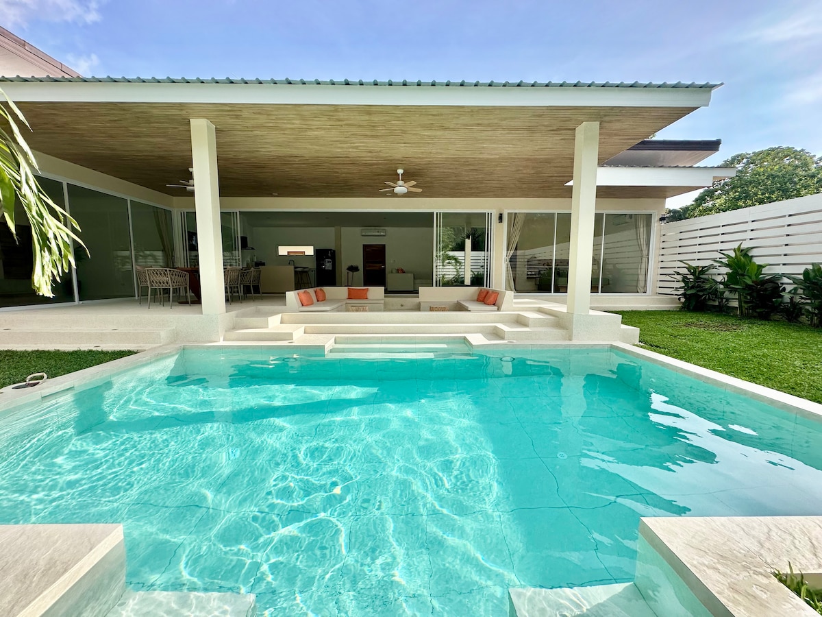 Brand NEW Luxury Salt Pool Villa, immersed in nature in a super quiet neighborhood (set away from the road) - close to HinKong Beach & many restaurants & cafes. This homely serene Villa has 3 Bedrooms, suitable for a family/3 couples. Spend your day relaxing in the dreamy salt pool, in a peaceful 500 SQM garden. Enjoy a fully equipped kitchen & living space with AC & 65" TV. Need to work? Dedicated AC office space & fast reliable wifi! We look forward to hosting you on your get-away soon.