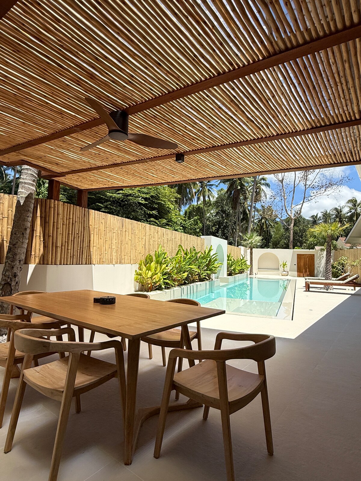 Welcome to Dojo Villa, a design pool villa tucked away in the iconic Coconut Lane. Boldly designed in brutalist elegance, this sanctuary draws from the serene flow of a traditional Japanese dojo where all living spaces orbit a curated central garden. Here luxury meets raw nature. Experience the quiet tension between minimalism and indulgence: open-air showers in private garden, expansive pool lounge, and a cinema room with a queen-sized sofa, every corner invites you to slow down and stay in