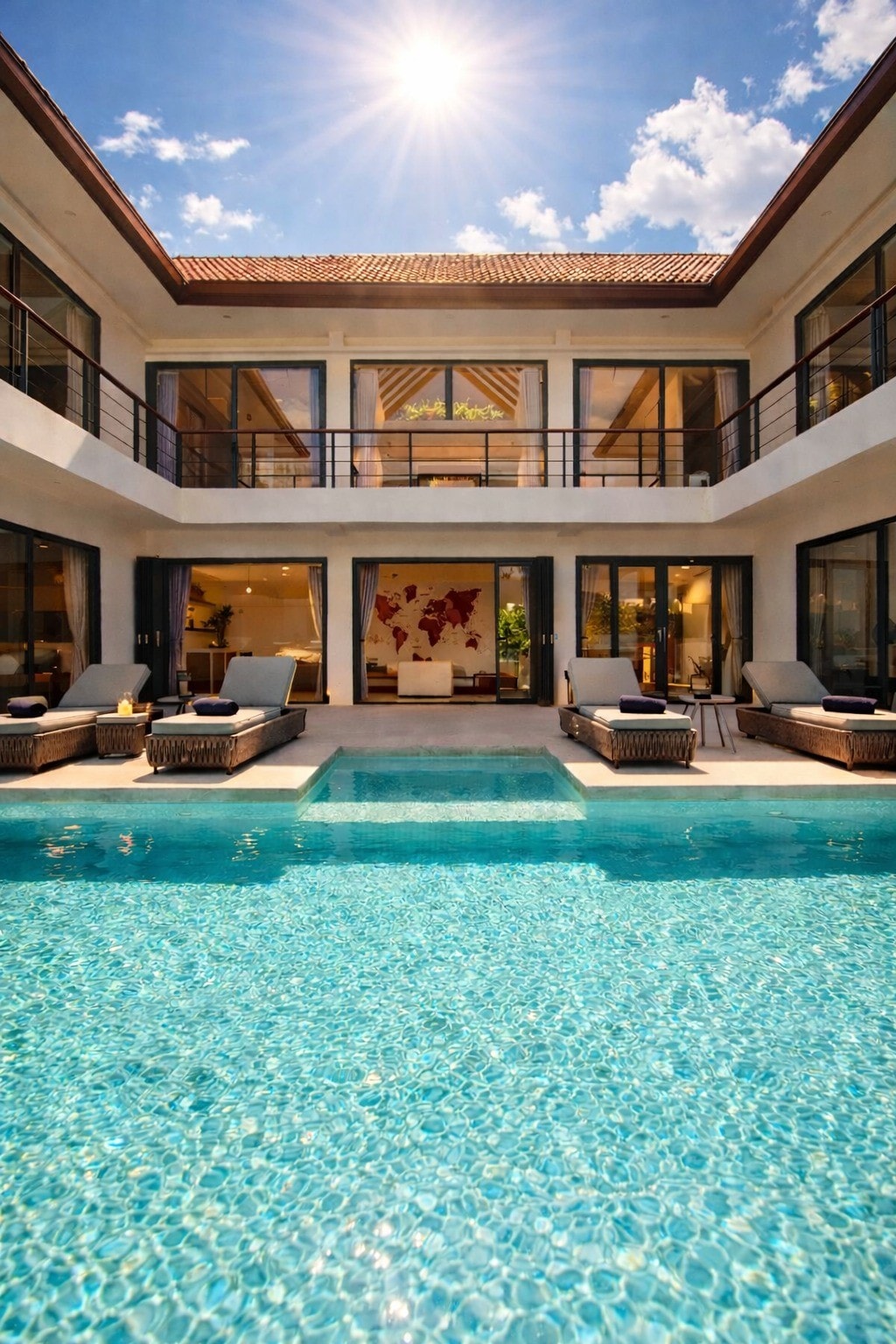 Villa Riverside in Mae Nam, Koh Samui, is a gated 5‑bedroom luxury villa surrounded by lush garden and golf‑course views. Ideal for family retreats or groups, it features king suites with ensuite bathrooms, private pool, spa, gym, outdoor cinema, billiards, and modern open‑plan living. Enjoy full privacy and easy access to Mae Nam Beach, Santiburi golf, Bang Po beach, and local island attractions—all within a tranquil tropical setting.