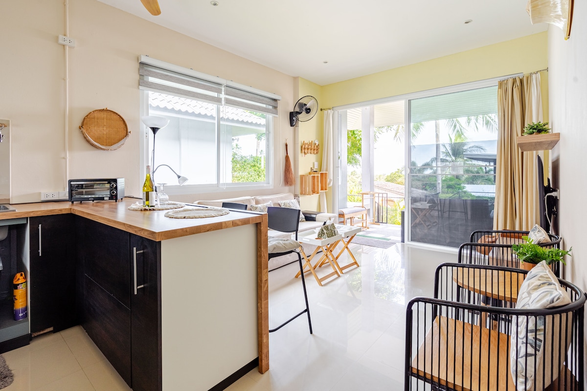 One-bedroom villa with a private pool and sea view, perfect for a peaceful stay on Koh Samui. Ideal for couples or a relaxing getaway. The airport, pier, and shopping mall are just 5 minutes away by car. Close to the island’s best beaches, Chaweng and Choeng Mon, as well as cafés, laundry services, currency exchange, and car & motorbike rentals. The villa offers privacy, a quiet atmosphere, and easy access to all key locations, combining comfort and convenience for your stay