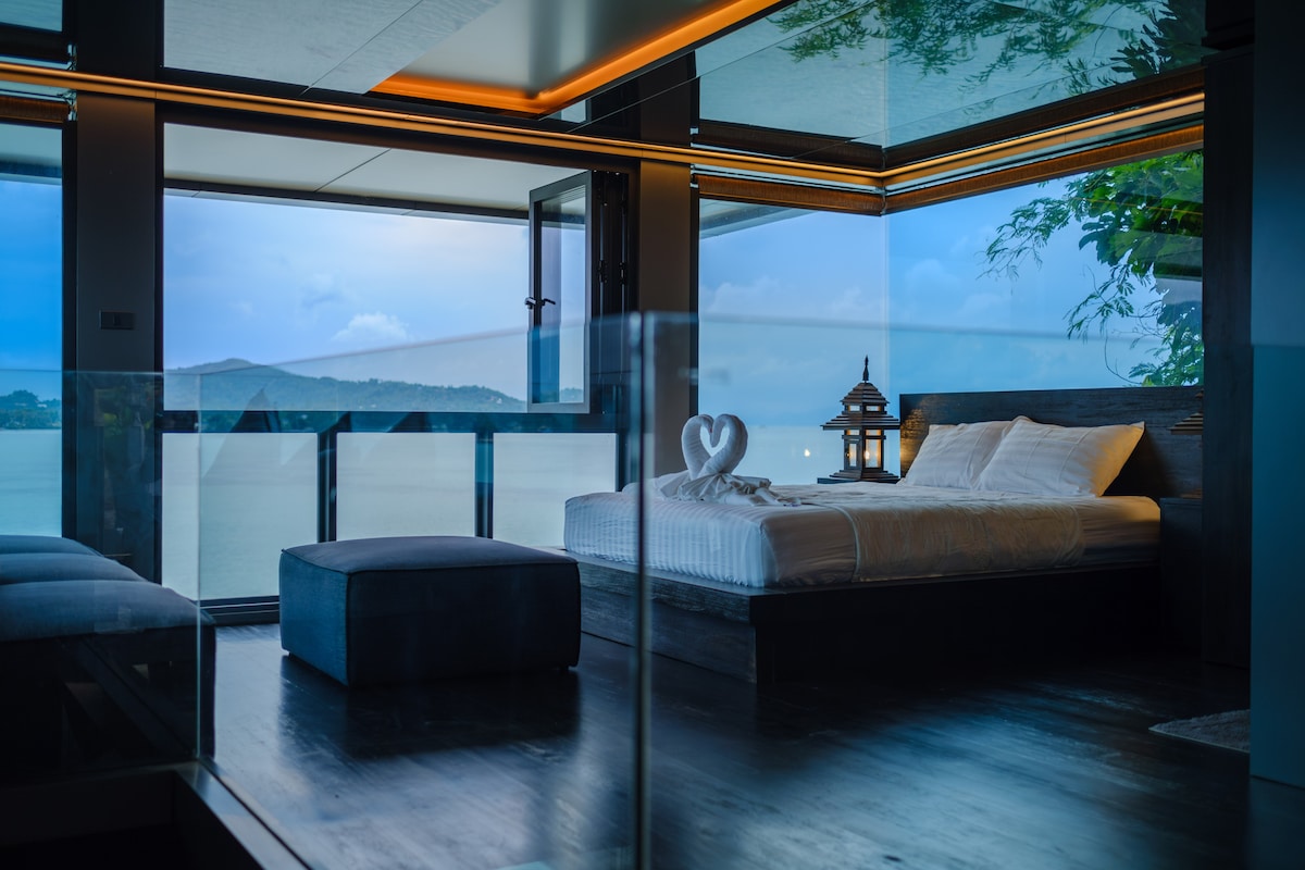 NEW ! PROFITEZ DU TARIF SPECIAL OUVERTURE ! 😀 La villa THE TERRACE, SUPERHOST AIRBNB⭐⭐⭐⭐⭐, est dotée de 2 grandes chambres en suites vue mer et d'une piscine à débordement privée ! Idéalement située sur la colline à Bophut, près du fameux Fisherman Village, sa TERRASSE OFFRE UNE VUE EXCEPTIONNELLE SURPLOMBANT LA MER ! Très moderne et lumineuse, la villa est parfaitement équipée et peut idéalement accueillir 1, 2 couples d'adultes ou une famille de 4 personnes. Petit déjeuner non inclus.