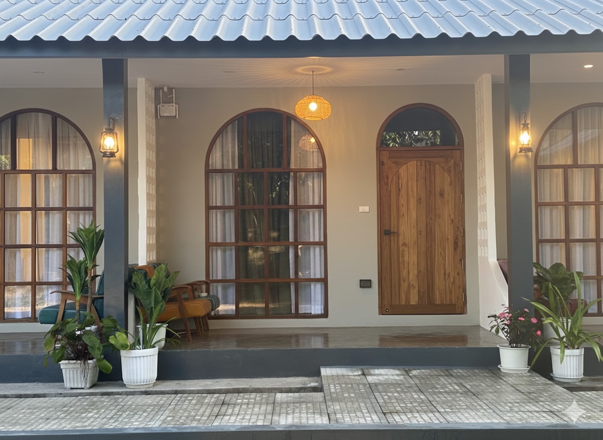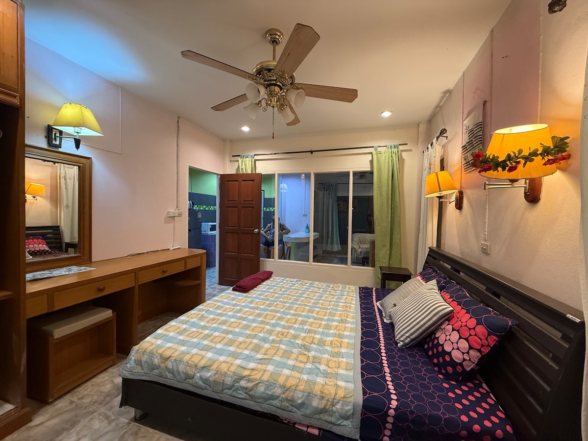 🏠 The little house is located within Boon Heritage House Guesthouse. The room is decorated with natural materials, warm tones. It comes with a restroom, air-conditioning, a private bathroom, comfortable bedding, a TV, a fridge, and other essentials for a relaxing stay. Although this room does not offer a direct sea view, guests can still enjoy the outdoor areas with a sunset views. Please note that the house is located along a main road, so some traffic noise be heard from passing vehicles.