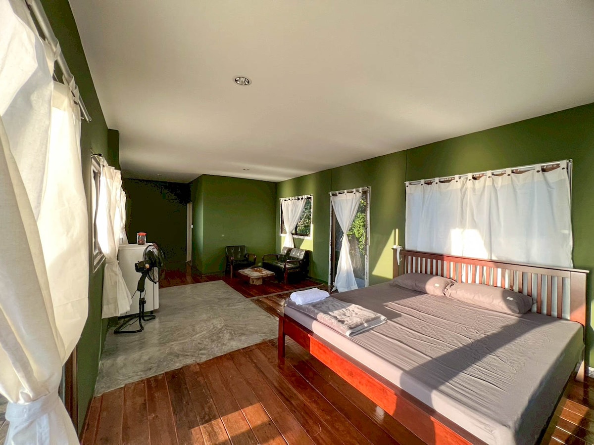 Our resort is a local style accommodation so room is a fan room but can watch the sunrise in the morning and soak in the natural views. As this room is close to restaurants and corridors, it may be noisy at times.