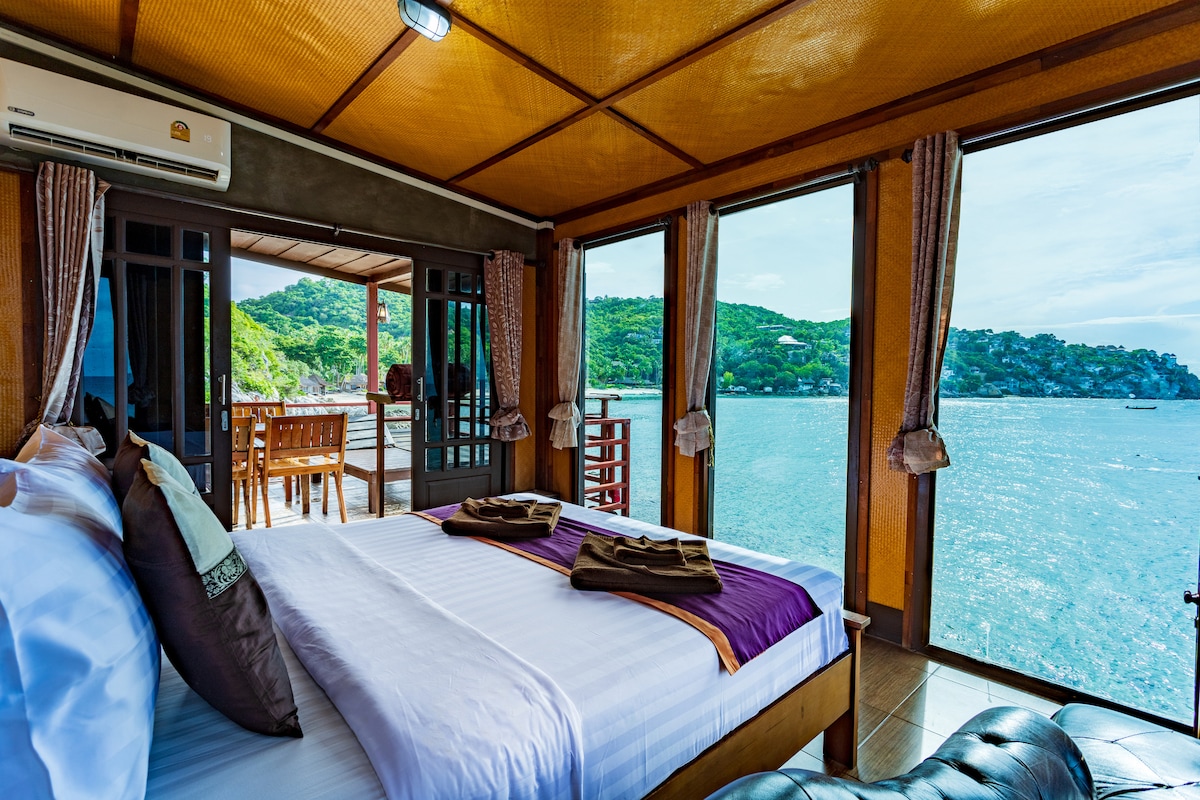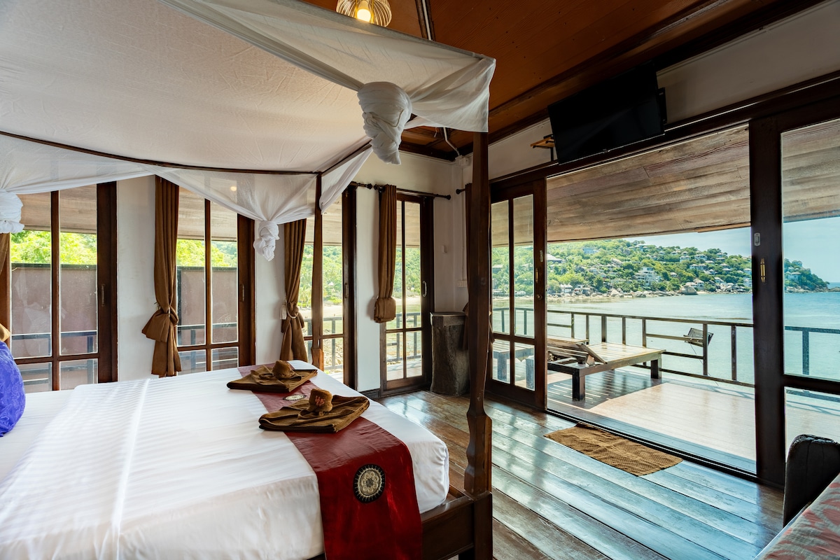 Cozy wooden bungalow by the sea with a million-dollar view. Unwind in a warm, nature-inspired space featuring large doors that open up to stunning ocean views, natural light, and fresh sea breeze. Enjoy peaceful moments on your private balcony, listening to the soothing sound of the waves — the perfect setting for a truly relaxing getaway **Seaview bungalow there are 3 rooms. The system will choose it for you**