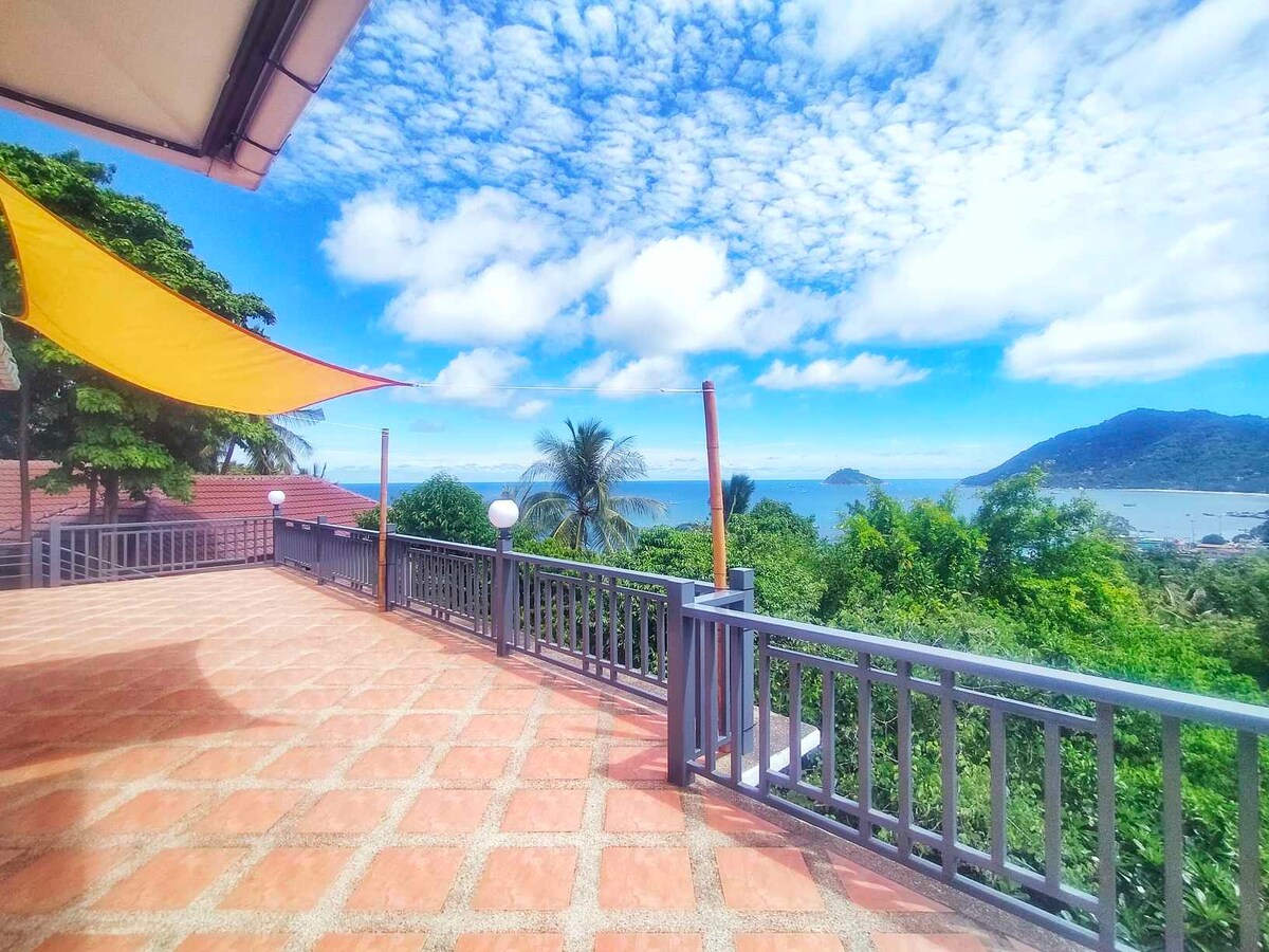 La maison avec son jardin de 6000m2 est situee au sud de l’ile avec une vue mer a 180 degrés , sur shark island, koh phangan, koh samui et le parc national de ang thong sur la droite. Il n’est pas rare d’apercevoir des baleines pilotes autour de shark island , et de multiples espèces d’oiseaux notamment des aigles . Cette maison environ 180 M2 possède 3 chambres, un bureau, 2 terrasses , 2 living dont un ouvert sur l extérieur pour des soirées bbq diners ou autre.