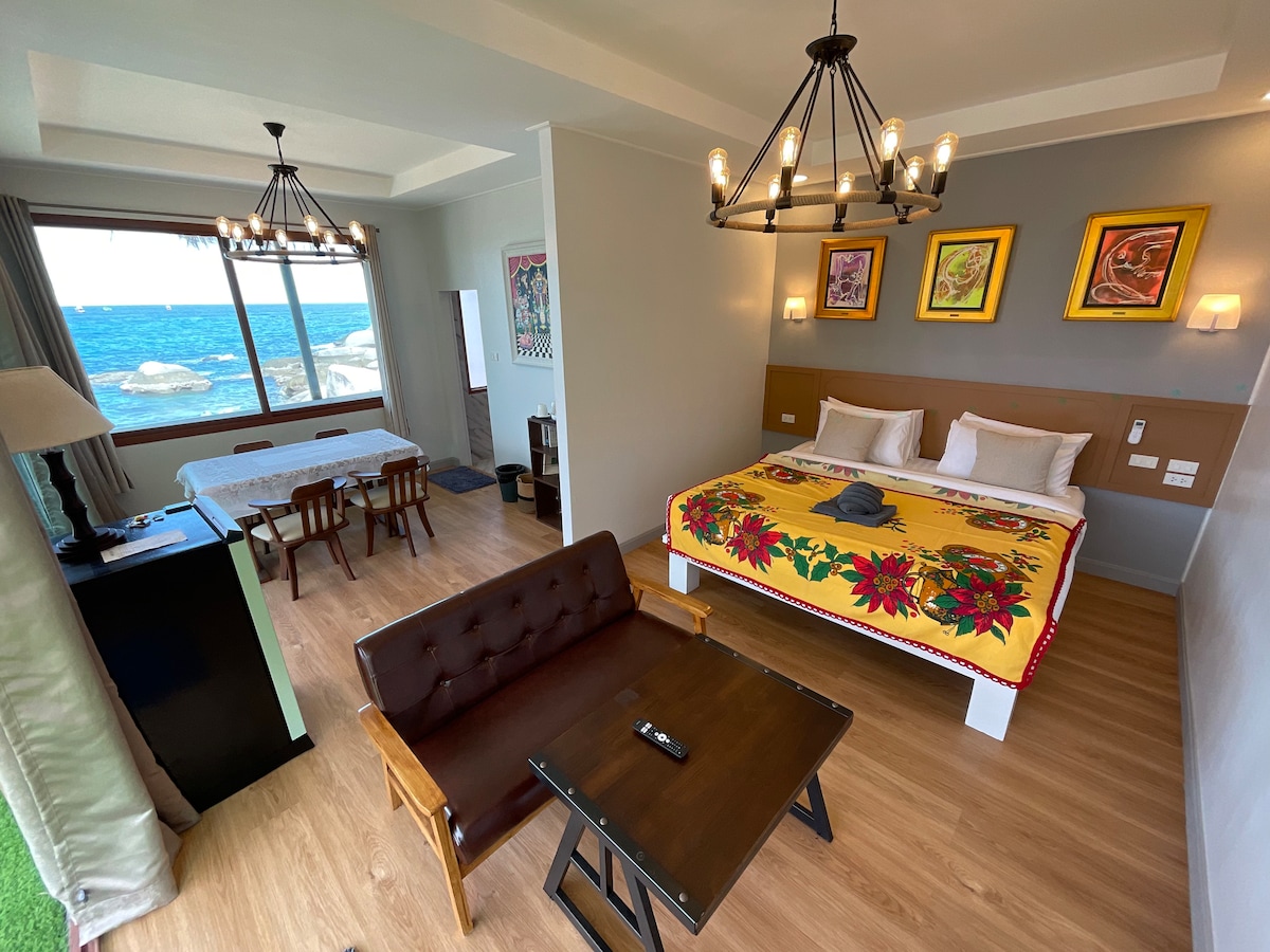 Forget your worries in this spacious and serene space in a tropical jungle hideaway. This gem boasts an amazing uninterrupted view of the famous islands of Koh Nang Nuan. Spend your days exploring our little island, then relax and unwind on the balcony with the stunning sunsets over the ocean.