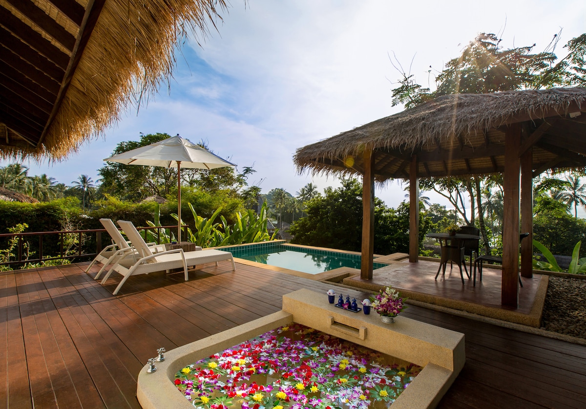 The luxurious traditional Thai style expansive terraces overlooking the Andaman sea and panoramic skyline. Perfect for couples or families, even spacious special, the suites create a private luxury experience with Thai touches, private swimming pool, comfortable patio, and the outdoor submerged bathtub while the choice and the pleasure is all yours.
