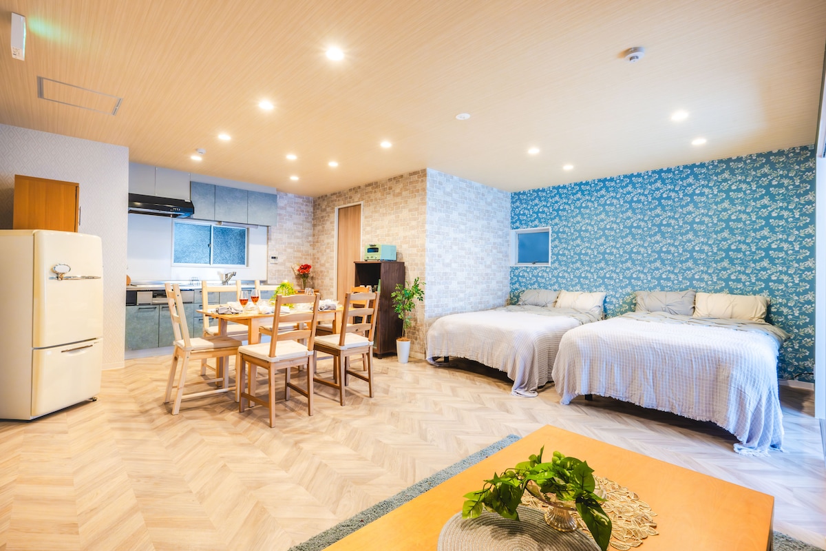 房源位于大阪今宫附近的民宿,位置优越、生活便利,步行4分钟即可到达JR今宫站,前往难波、心斋桥、通天阁、新世界等热门景点只需几站电车,非常适合来大阪自由行的旅客。周边有便利店、超市、餐馆和本地小吃街,生活氛围浓厚,是体验大阪本地风情的好选择。 民宿房型日式与现代的结合设计,适合情侣、小家庭或朋友团体入住。房间内配备厨房、简单厨具、微波炉、洗衣机和阳台,让您在旅途中也能享受家的感觉。客房整洁宽敞,布置温馨,房间内提供的阳台,适合晒衣服或简单休憩,别适合中长时间停留。 我们致力于提供安静、安全、舒适的住宿环境,入住前会提供详细的自助入住指引,也欢迎提前与客服联系,我们会尽力根据您的需求安排适合的房型。无论您是短暂停留,还是计划深入探索大阪的城市魅力,这里都会是一个性价比极高的住宿选择。