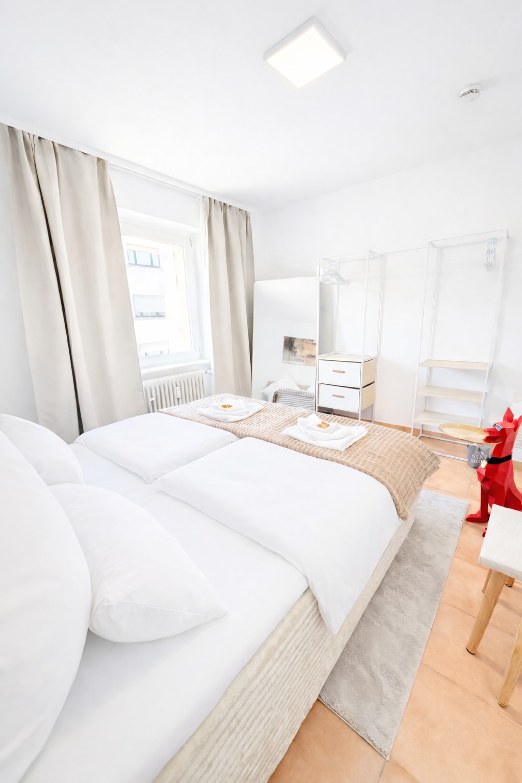 Modern eingerichtete Neubauwohnung mit Balkon und Aufzug im Herzen von Koblenz. Panoramablick auf die Herz-Jesu-Kirche. Am Beginn der Fußgängerzone und 2 Minuten zu Fuß vom Löhrcenter. Die Altstadt, das Schloß und das Deutsche Eck zu Fuß gut erreichbar. Die Wohnung umfasst ein großes Wohnzimmer mit Schlafcouch (Liegefläche 1,20x1,90m), eine Küche, Schlafzimmer mit Boxspringbett (1,80x2,00m), Balkon, Badezimmer mit ebenerdiger Dusche.