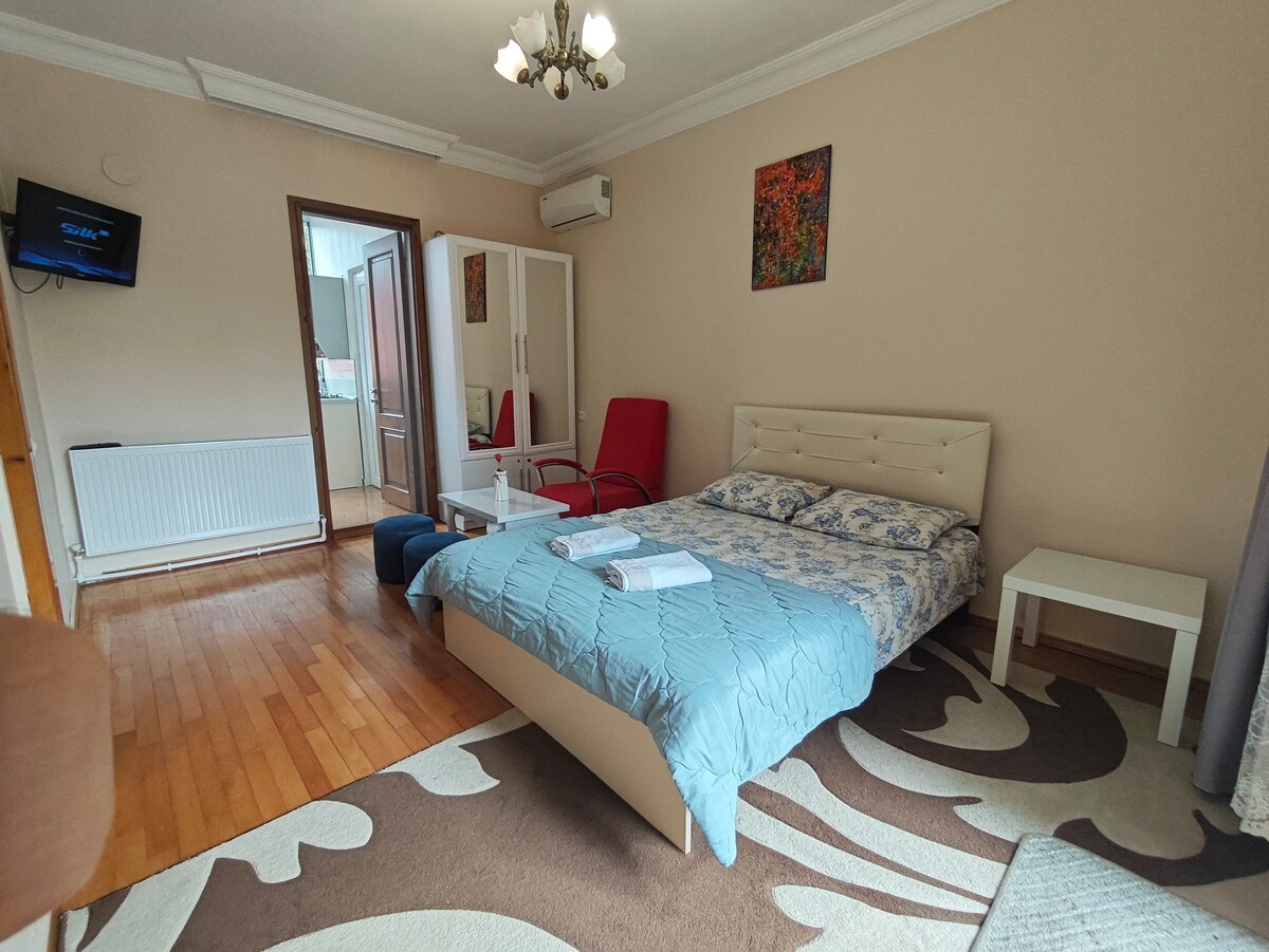 Исторический Дом 1870 года постройки, в самом живописном месте Цихисдзири, рядом с комплексом Castello Mare. Сдается весь первый этаж, вход отдельный, высота потолков 3,8м. В вашем распоряжении 2 спальни, гостиная, кухня, санузел и двор с беседкой. Всего максимум 8 гостей может разместиться. В первой спальне двуспальная + односпальная кровать, во второй спальне 3 односпальные кровати, в гостиной диван + кресло-кровать. Оставьте проблемы позади в спокойной атмосфере этого уникального жилья.