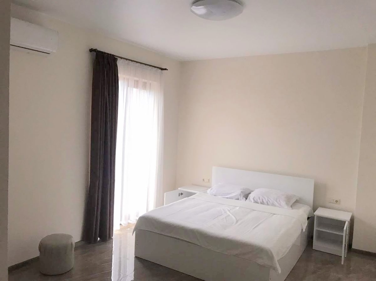 Приглашаем вас в Кобулети! В нашем гостевом доме вы сможете отдохнуть после насыщенных дней на пляже или экскурсии. Мы предлагаем гостям двухкомнатные апартаменты с отдельным входом, своей кухней и санузлом. В апартаментах одна двуспальная кровать с удобным матрасом и раскладывающийся двуспальный диван, кондиционер, стиральная машина, холодильник и варочная панель. мы предоставляем гостям хлопковое постельное белье и полотенца на время проживания. До пляжа - 3 минуты пешком. Ждём вас в гости!