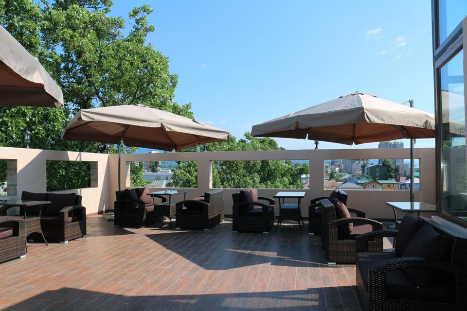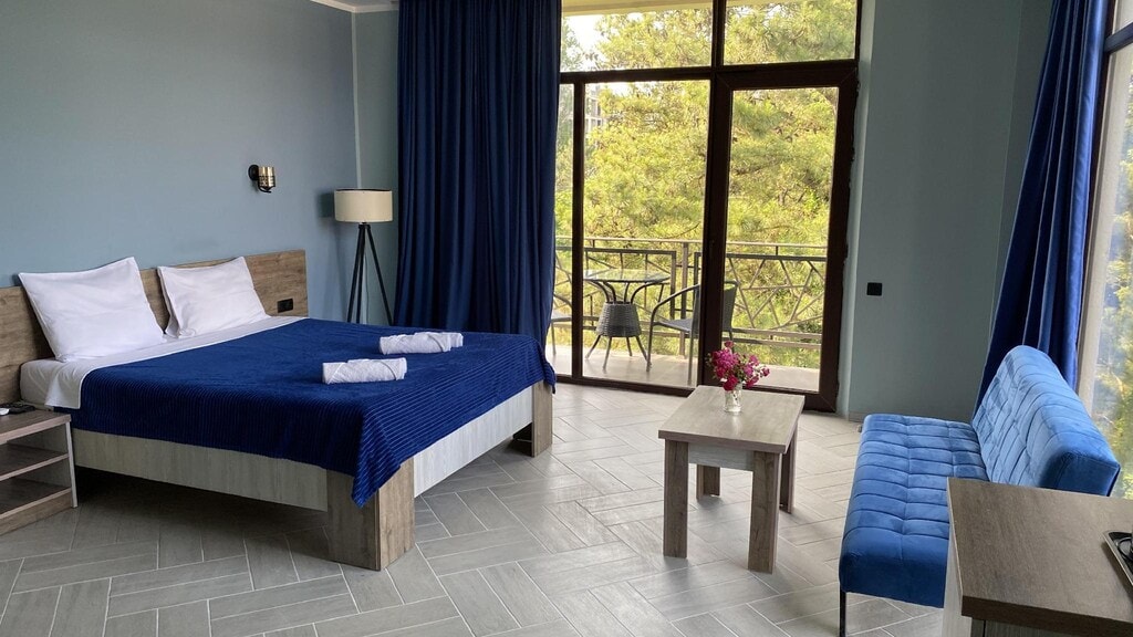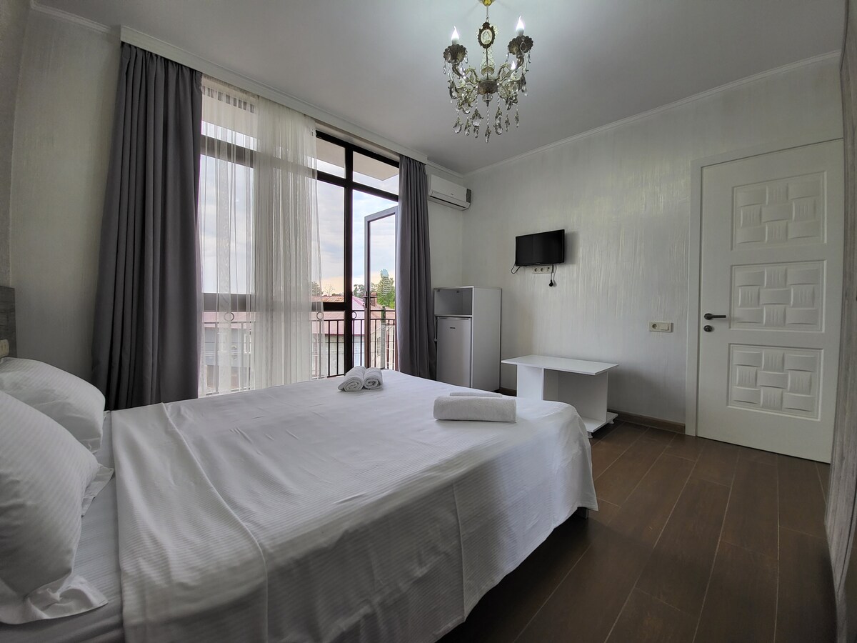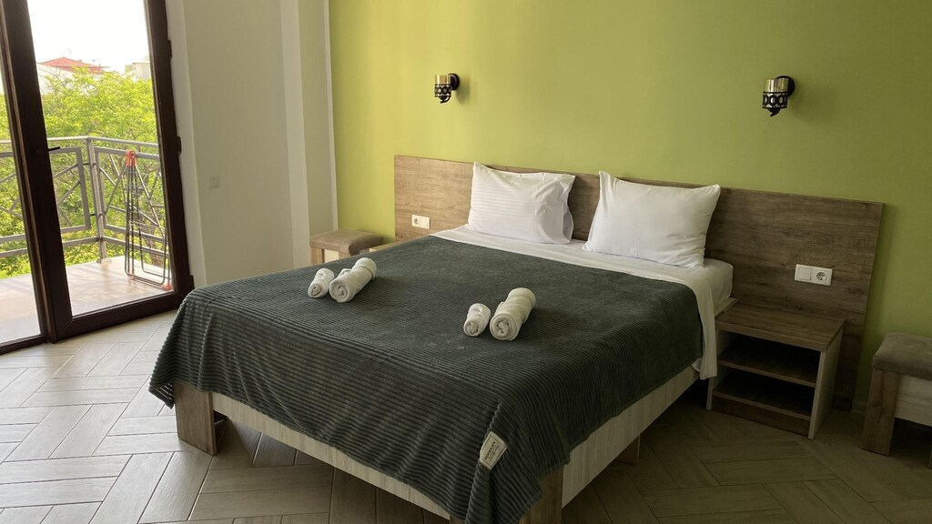 Новый отель, для комфортного проживания гостей на первой линии моря. Владельцы - грузинская супружеская пара. Примут вас со всей душой как в Мимино. Добро пожаловать дорогие гости, угощайтесь нашим вином и шоти.