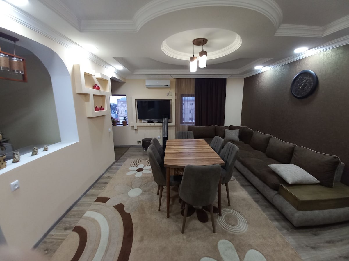 Квартира с Евро ремонтом, с балконом, с видом на горы. К вашим услугам: большая кровать в спальне, в комнате - раскладной диван, кухня со всем необходимым, большой балкон. Есть Smart ТВ, wi-fi,кандиционер,посудамоичная машина. Поблизости расположены кафе, магазины, маршруты городского транспорта. ВСЕ РЯДОМ!!! Расположение до пляжа и нового бульвара - 5 минут ходьбы. Есть возможность встретить. ¡Долгосрочным гостям трансфер прилагается !