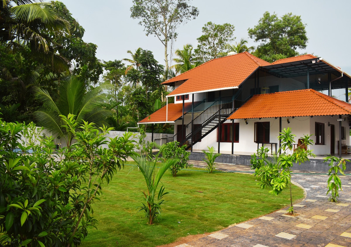 Enjoy and relax with the whole family and friends. Beautiful riverside stay in a rustic village. Function hall with mike and speakers. Yoga meditation classes. Enjoy the river in rustic village. Healthy and amazing home made Kerala food. Loving family. BBQ and more..