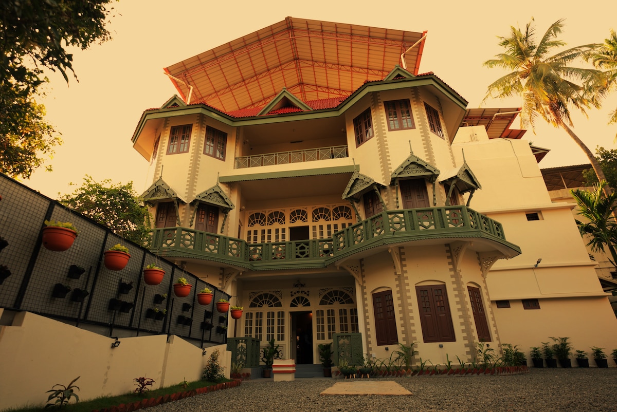 You won’t want to leave this charming, one-of-a-kind place. 18th century heritage Dutch bunglow facing Iconic Aspin wall (hosting world famous Biennale arts festival) super fast WiFi palatial AC room with 2 queen beds and private bathroom facing kochi harbour in house organic veg and non veg food options wooden flooring, antique furniture in the heart of fort kochi. watch the Chinese fishing nets for Live catch watch kathakali in Fort kochi every day at 6pm . happiness is contagious ❤️