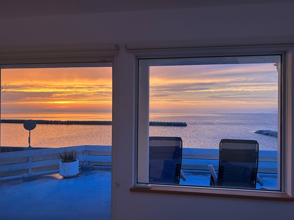 愛媛県伊予市下灘駅の近くの海岸沿いに、一日一組限定の一軒貸しの民泊施設がオープン。 目の前に広がるのは見渡す限り美しく青く澄み渡った空と海。 漆喰をベースに落ち着いた空間を演出。 瀬戸内海を一望でき海の目の前で一階には、夕日を見ながら、スタイリッシュなキッチンで料理ができます。 二階には、テラスで夕日を見ながら、つくろぐことができます。 クイーンサイズのベットが一つ。クイーンサイズに変わるkoalaのソファーベットが一つ。 二階には、ダブルのベッドが一つ。 最大4名様まで宿泊できます。 朝ごはんの自然酵母パン、ロダンコーヒー、付きです。 食器は、愛媛県出身陶芸家の佐々木智也の作品と、ムスタキビ、龍泉窯を使用しております。タオルは、今治タオルの伊織のタオルを使用しております。 シーツは、リネンを使用しております。 もし、ご夕食が必要な場合は、隣接しているShiojiレストランで、ゲスト様のみ使用する事ができます。 駅への送迎は無料でしております。 豊かで想い出に残る素晴らしいひと時をお届けします。 他には類を見ない瀬戸内の絶景を望む別荘でお楽しみください。