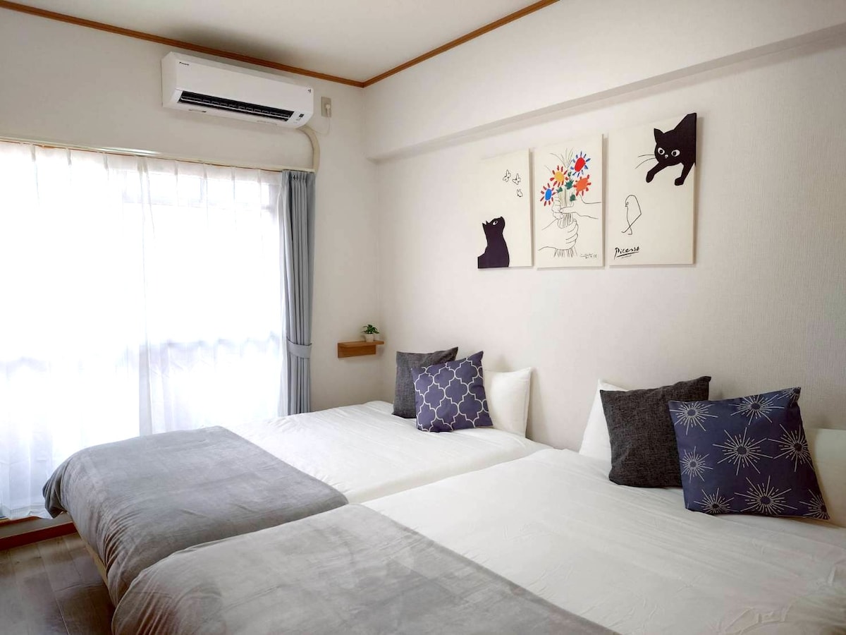 欢迎来到千舟町Stay! 1. 便利的位置,步行10分钟即可到达松山市站和大街道站,步行3分钟到大街道! 2. 房间于2025年7月对地板、墙壁、厨房、卫生间等进行了翻新,干净整洁。 3. 宽敞的双人床,非常适合情侣或朋友等团体入住。 步行1分钟内有一家7-11便利店,附近还可以步行到居酒屋、百元店、餐厅、商店街、拉面店等。 入住期间,您可以使用免费的高速Wi-Fi。 ・1张双人床 ・1张单人床 最多可容纳3人入住 适合商务旅行、短期或长期住宿。 非常欢迎长期住宿的客人! 期待您的预订! • 松山机场:车程18分钟 • 松山市站:步行10分钟 • 大街道站:步行10分钟 • 松山站:车程10分钟 • 松山城:步行15分钟 • 道后温泉:车程10分钟 位于松山市中心,地理位置优越,步行即可到达繁华商业区,方便外出午餐或晚餐。