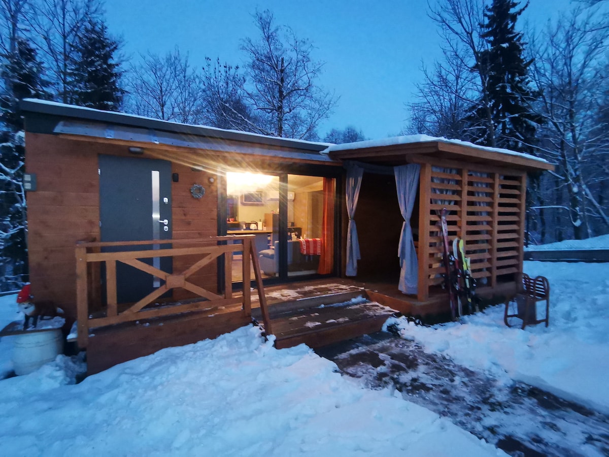 松树度假木屋,带按摩浴缸,可欣赏巴比亚山的美景