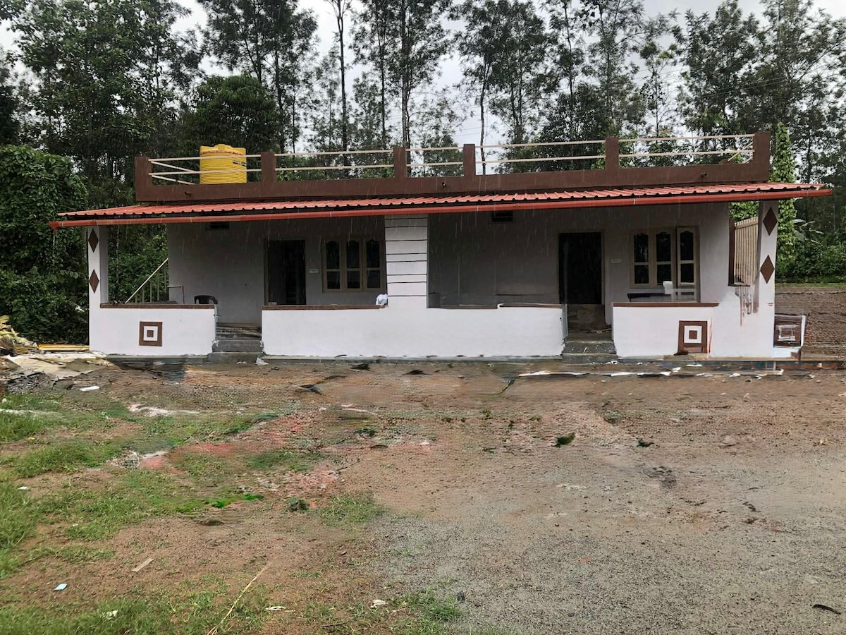 Ideal for a family of four, this property offers a spacious hall, bedroom, and a Western-style toilet. Amenities include hot water, a TV, and relaxing nature walks. Vegetarian restaurants are within walking distance, and it's easily accessible for bus travelers. All tourist attractions places are in 15-20km radius. Madikeri 20-30 mins drive. Tala Cauvery 40mins drive Dubare 30-40mins drive Golden Temple 40- 50mins drive Abhi Falls 30-40mins drive Chelavara falls 30-40mins drive