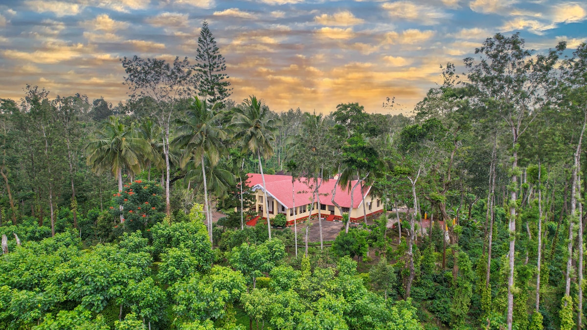 A peaceful 3-bedroom bungalow tucked away in the heart of our lush coffee plantation—perfect for a group of friends or a large family looking to relax, reconnect, and recharge. 10 km from town, the bungalow offers complete seclusion amidst nature. The only sounds you’ll hear are the rustling leaves, chirping birds (15 varieties seen), and the occasional drizzle turning the whole estate into a green, misty wonderland. Look forward to hosting you with some simple home cooked food and privacy.