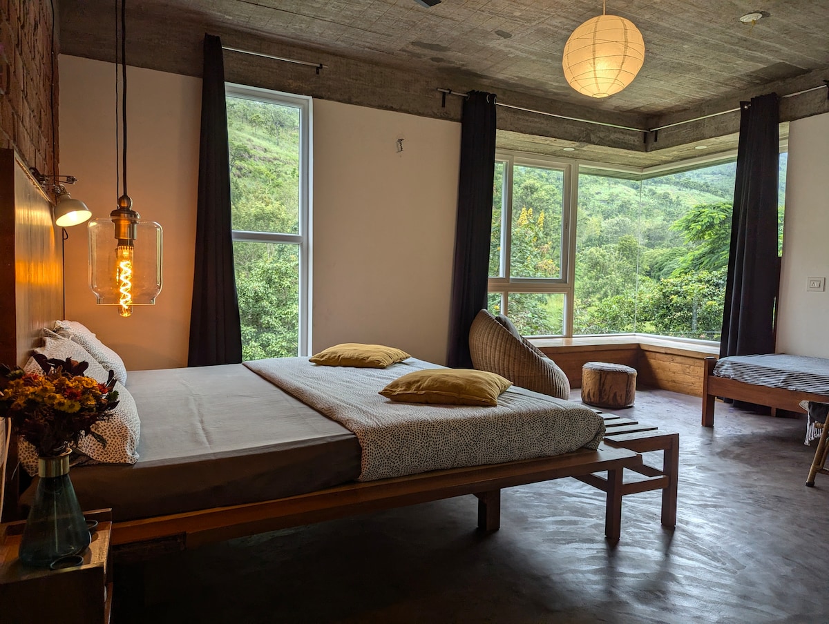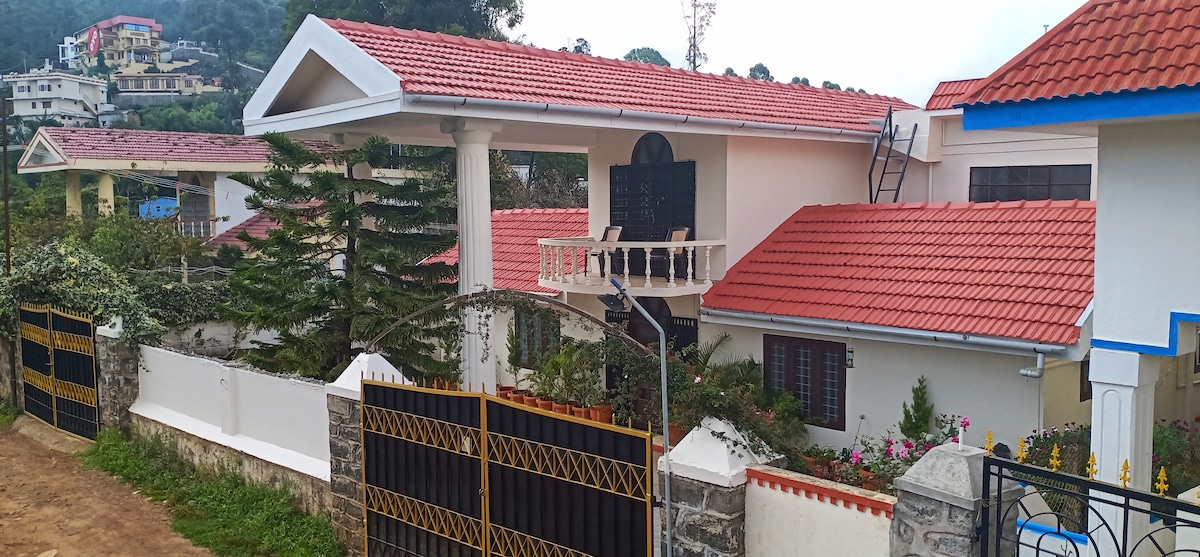 Nestled among vertical pear trees on a 30-cent plot, Akkandi Veedu, Fairy Falls Road is a cozy 6-bedroom house with 4 rooms on the ground floor and 2 on the first, along with common spaces. Each room overlooks the garden. For cost-effectiveness, pricing is based on double occupancy—guests pay only for rooms they use while enjoying full privacy.Base tariff covers 4 bedrooms and 8 guests.The villa accommodates up to 18 people. Homestyle 2-course South Indian breakfast included (tea/coffee extra)