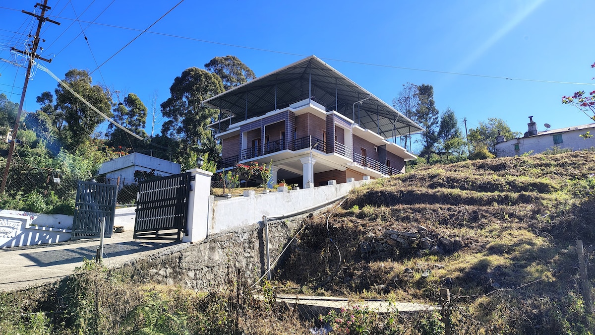 **Charming 5 BHK Villa in Kodaikanal with Scenic Views** Experience a relaxing getaway at our 5 BHK villa, surrounded by lush greenery and offering breathtaking hill views. Perfect for families or groups, this villa features spacious bedrooms with ensuite bathrooms, a cozy living area with a fireplace, a fully equipped kitchen, and a large balcony. Enjoy indoor games, outdoor lawn space, and free Wi-Fi. Located near Kodaikanal’s top attractions, it's the ideal spot for a peaceful escape.