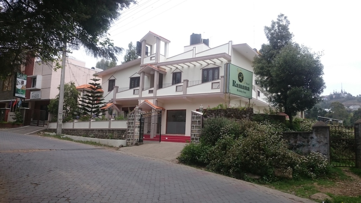 Ramana Holiday Inn is Boutique hotel for couple to stay @ kodaikanal. Hotel is located in the center of kodai valley area.Its just 500mts walkable distance from kodaikanal lake. Since it located alongside of valley, you can view entire kodaikanal hill from the hotel. Its located on the center of kodaikanal so its easy to reach all the attractions. Even its center but still its so calm and nature. You can feel the fresh breeze. Perfect place to stay for couple, business trips and family of 3 to 4