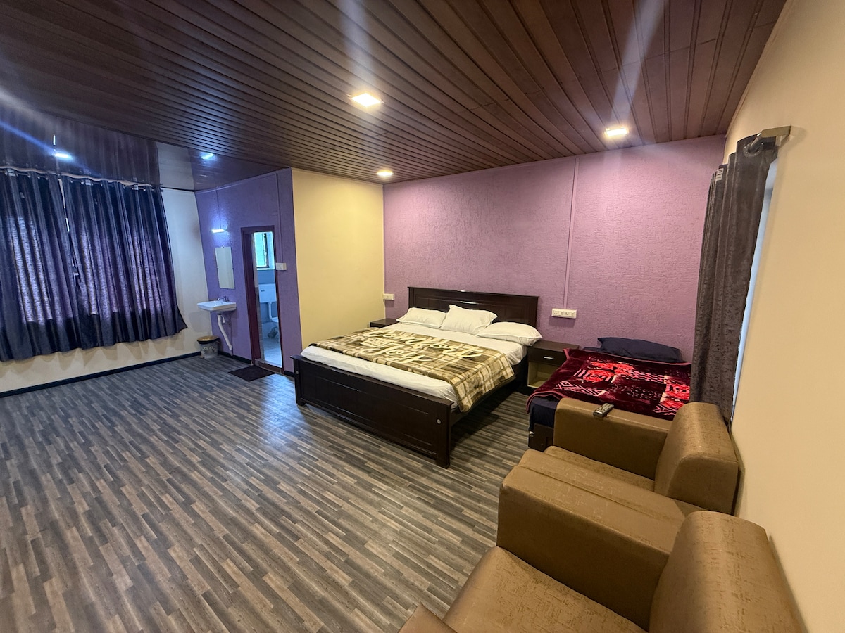 Experience unparalleled comfort in our Spacious Double Room, spanning approximately 300 Sq Ft and thoughtfully designed to cater to the needs of leisure, Couples, corporate, and family travelers. Enjoy the convenience of a private bathroom equipped with a shower, Heater, washbasin, mirror, and complimentary toiletries. The room includes a plush King bed, a wardrobe, a bedside table, and a TV for your entertainment. Additional amenities such as a kettle, free daily Wi-Fi access and enjoyable stay