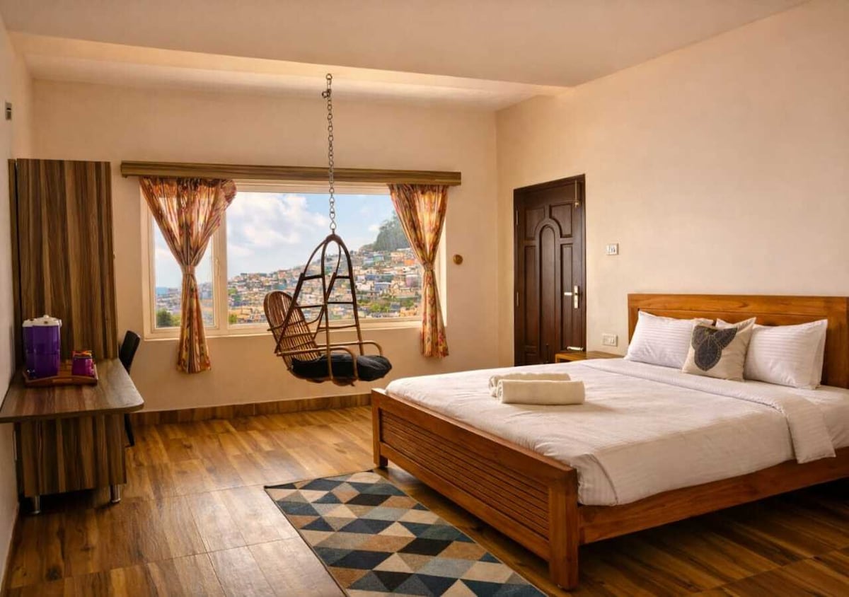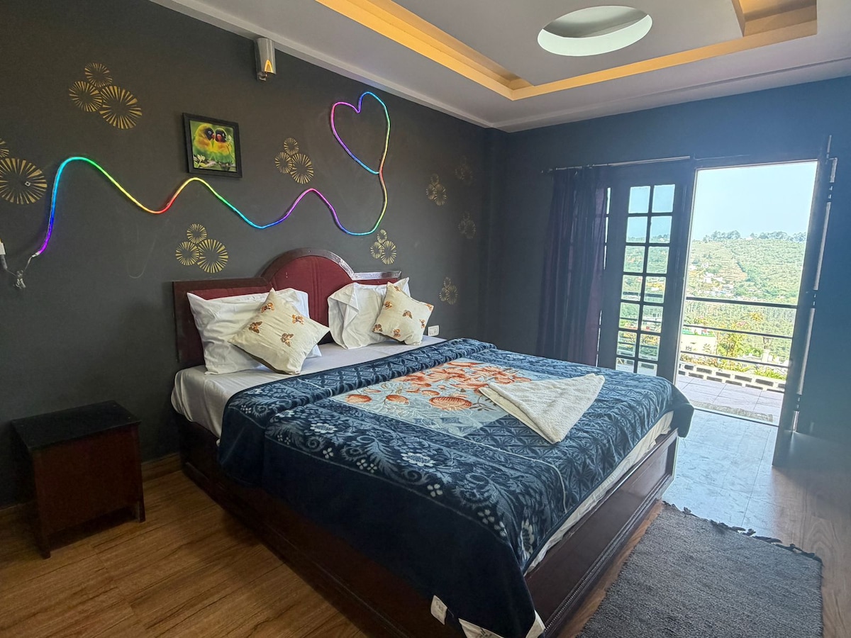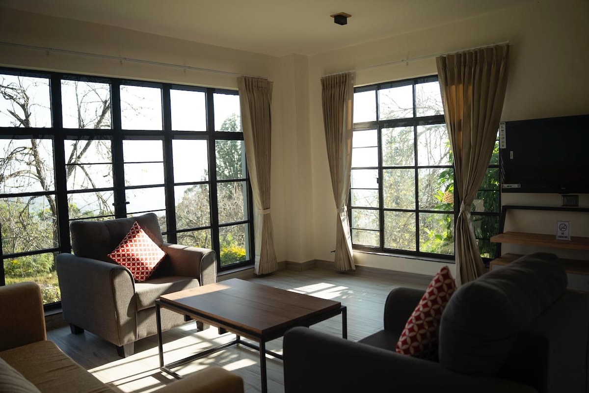 Dr Misty Hub is designed for comfort, space and convenience, perfect for families and group travellers. The suite features a spacious master bedroom, additional sleeping space, a modern attached bathroom, and a comfortable living area for relaxing together. Enjoy high-speed WiFi, Android TV, a fully equipped kitchen and warm interiors that feel like home. Large windows bring in fresh hill air and misty views, creating a peaceful stay. Ideal for families seeking privacy.