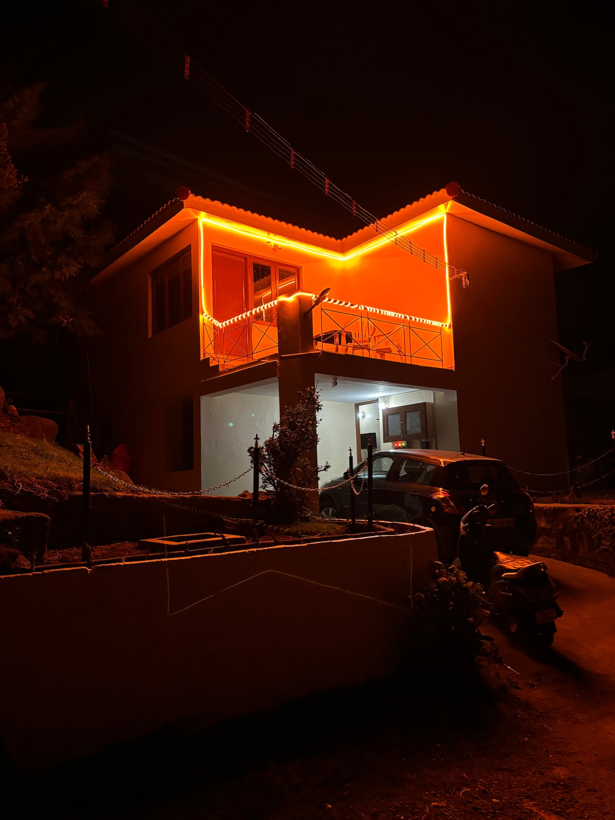 A serene private cottage overlooking the valley. This property is very cozy with excellent amenities and offers mesmerizing views from the cottage. The property is a three storeyed with an open lush green grass lawn on gardens around. The location is great for anyone who wants to escape the hustle and bustle of city life and spend time with nature.