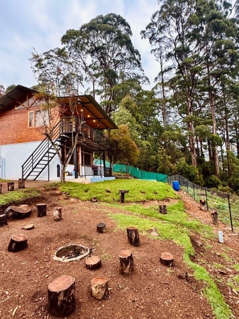 Spacious and thoughtfully designed in pinewood, WanderNest's private cabin is made for couples or a small group of friends seeking a serene escape. Just 6 km from Kodaikanal town, the cabin offers calm, romance, and the beauty of the hills. The highlight of your stay? Waking up in a king-size bed facing the hills — misty mornings, golden hour sunsets, and starry nights right from the comfort of your room.