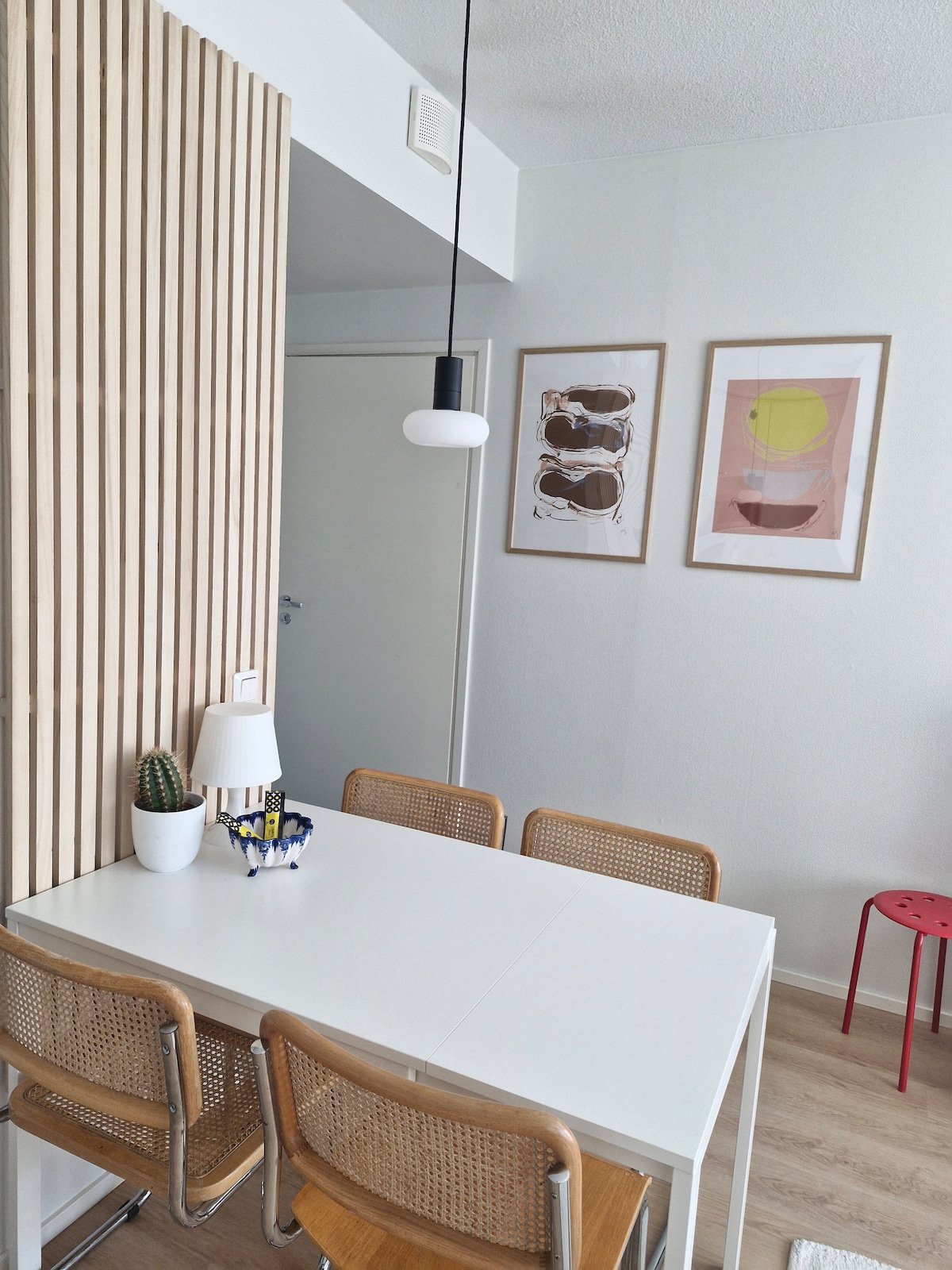 Yhdelle tai kahdelle monipuolinen, kodinomainen huoneisto Mynämäellä. Tarvittaessa myös kahdelle lapselle saadaan vuode sijattua vuodesohvasta. Huoneisto soveltuu hyvin pientä ylellisyyttä kaipaavalle, työmatkan rauhalliseksi etätyöpisteeksi. Aarno1 on sijainniltaan loistava kun matkustaa E8-tietä ja kaikki kylän palvelut ovat käytettävissä. Rauhallinen sijainti takaa hyvät yöunet. Aarno1 on varustettu ulkopore-ammeella, 55"TV:llä, nopealla 5G Wifi-liittymällä ja kaikilla kodin tarvikkeilla.
