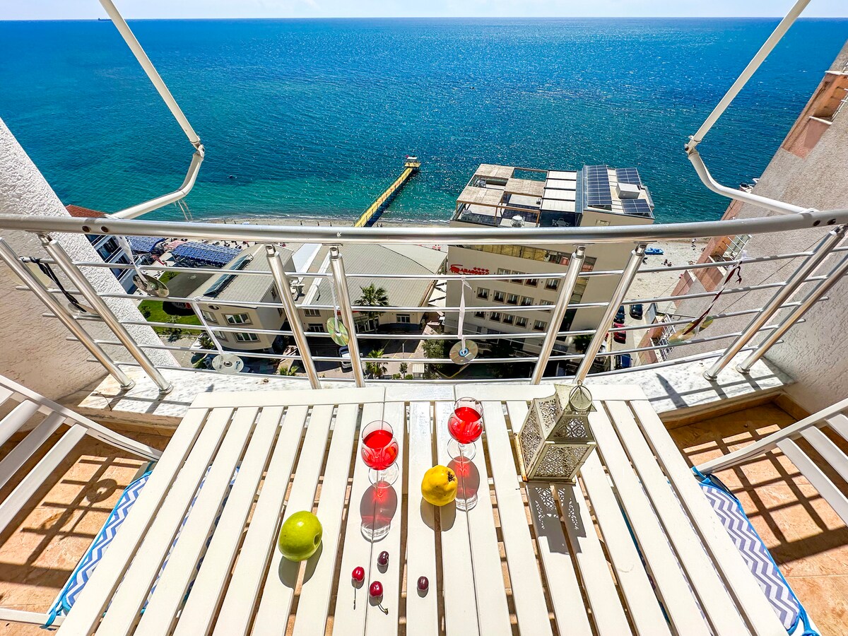 Welcome to your charming seaside apartment, a haven of tranquility and modern elegance. Adorned with a refreshing style, this meticulously decorated space offers a delightful escape. As you step onto the balcony, a breathtaking view of the pristine beach and sparkling sea greets you. Nearby, an array of conveniences await, providing easy access to amenities and entertainment. This coastal oasis offers a perfect blend of comfort and adventure. Come, experience seaside living at its finest.