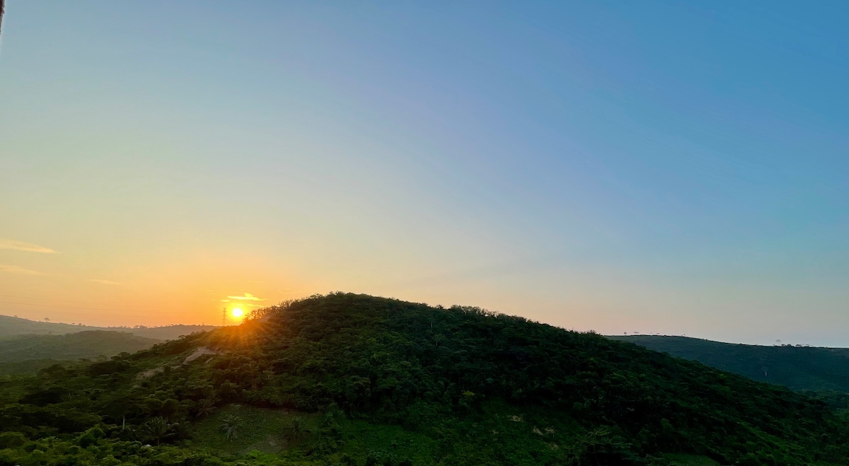 Tranquil Getaway, hiking trail, breathtaking nightviews, with stunning sights overlooking the city from our exclusive at Palm Heights Homes. Located on the top of Obuotabiri Mountain for nature lovers, 45 minutes drive each to Boti falls and Bunso Eco Park. Experience a perfect romantic getaway! A serene environment, 1hour 30 minutes drive to Peduase Valley Resort and Aburi Botanical Gardens. Come and enjoy your stay!