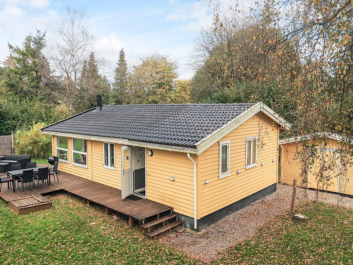Her er der stråtag og bjælkeloft i den nyrenoverede bolig. Du kan nyde den smukke have og den store naturgrund tæt op til skoven. Måske du vil tage en overnatning i det fri i ved bålstedet og shelteret. Eller bare være på de hyggelige terrasser.