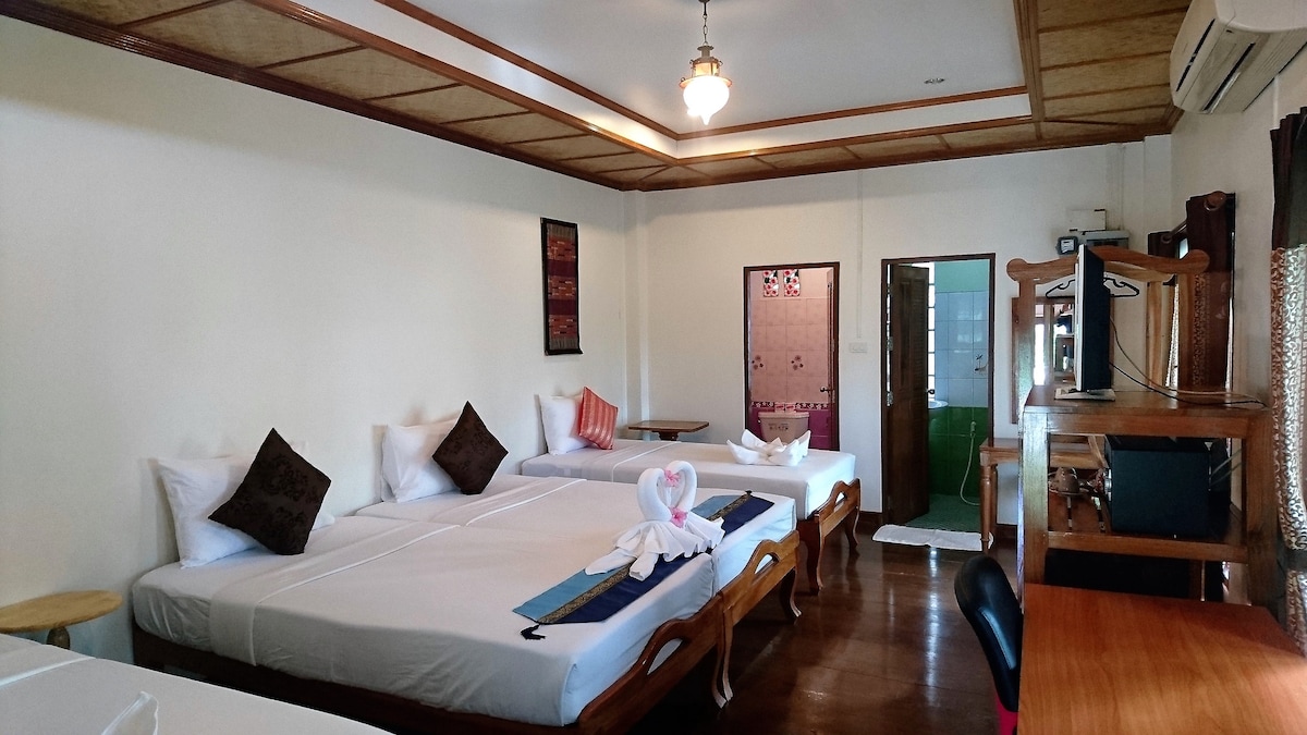 Our room is a suite with an indoor area of 50 square meters. It is divided into one living room and one bedroom. It provides a separate bathroom and 24 hours of hot water. Each family has an independent garden. Satellite TV in Asia and Europe can provide more than 20 channels We are concerned about the quality of life. All furniture uses teakwood from northern Thailand. We pay attention to the good sleep, especially select the high standard mattress Sealy from the US.