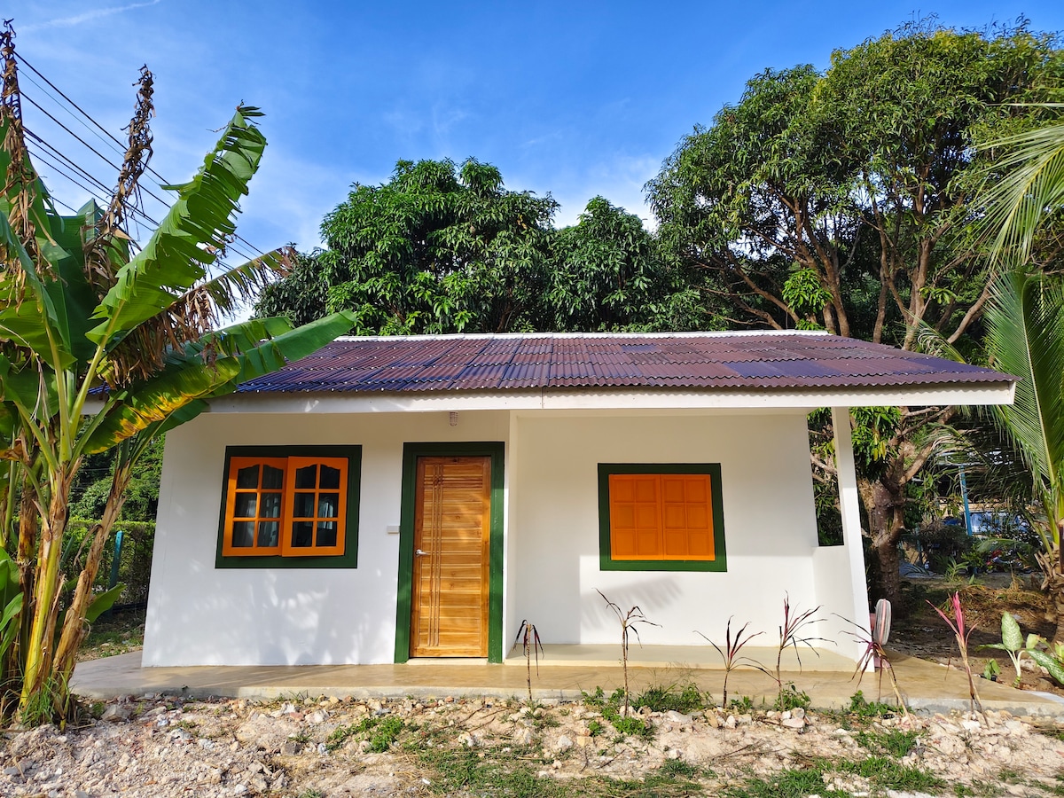Comfortable bungalow located in a quiet resort, in a garden in Klong Prao, 200m away from the beach and 200m away from the main road. Air-condition, fridge, private bathroom with hot shower, good WiFi, TV with Netflix. Our guests have access to a shared equipped kitchen outside our reception. Cleaning on demand for free.
