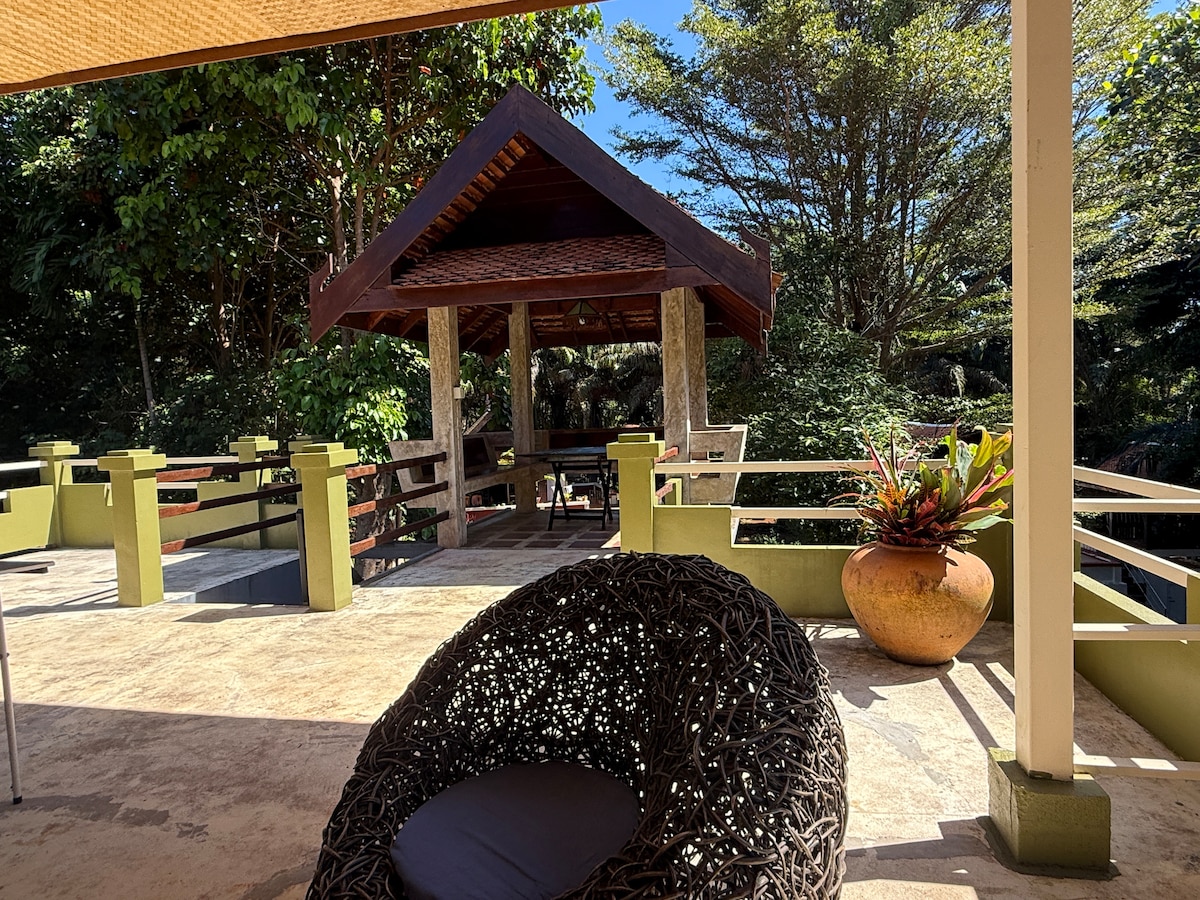2 Bedroom stand alone Penthouse apartment set on top of a boat house directly on a boat canal. Just steps from the Beach and the famous Shambhala beach bar Pool. The top floor commands partial sea views and great sunsets. The other decks have views of the Jungle Clad Hills and the River. Breakfast for up to 4 Guests is included.