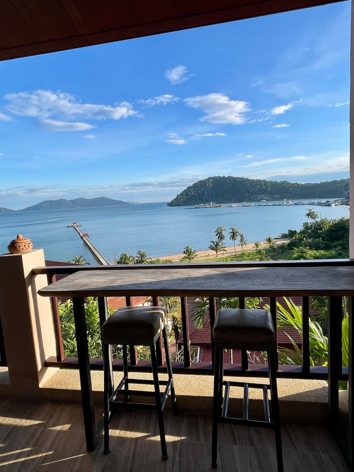 Das bestens ausgestattete Penthouse mit 130m2 Wohnfläche und einer grossen Terasse mit 25m2 bietet eine traumhafte Aussicht über die Bucht von Bang Bao, das Pier sowie die vorgelagerten Inseln des Archipels. Zur Residence gehört ein großzügiger Infinity-Swimmingpool in einem gepflegten tropischen Garten und eigenem Anlegesteg.