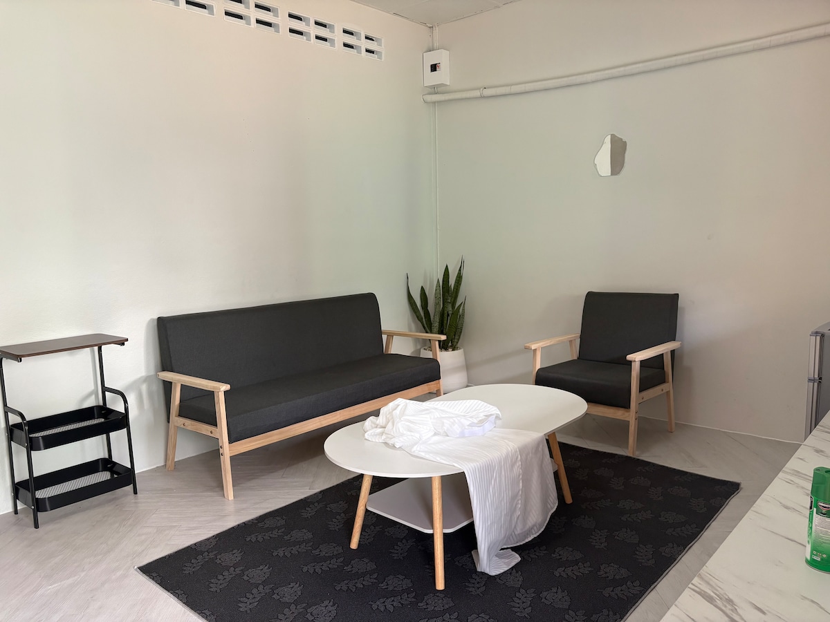 The bungalow is located in a quiet area in the green garden area behind the main house, surrounded by trees of the orchard. The bungalow has a private terrace, one bedroom, a separate kitchen and a bathroom and is about 55 Sqm large At Garden Lodge you will find a free parking place. The center of the village is only about 5 min. of walking away, where you can find several restaurants, local grocery shops, 7-eleven and big C mini Markets and ATMs. The place is very suitable for a longer stay.