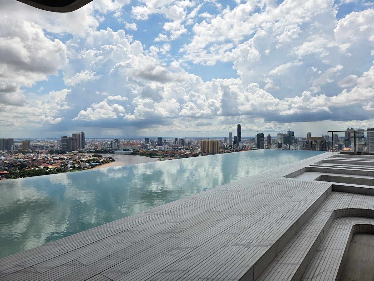 这处特别的房源在市中心绝佳位置,公寓对面就是大型购物中心和索菲特五星酒店,方便您规划参观行程 -靠近金边永旺购物中心(Aeon Mall Phnom Penh),步行两分钟即可抵 -永旺购物中心有星巴克、超市、餐厅和服装店 -#*##Phokeethra/ (Sofitel Phokeethra )对面 -配备三星智能电视 -配备厨房和相关用品、冰箱和热水壶 -配备洗衣机和衣架 -金边最高的空中酒吧- Celeste和屋顶的无边际泳池可俯瞰湄公河 -配备健身房 -提供适配器 -提供洗发水、沐浴液、浴巾、牙膏和吹风机