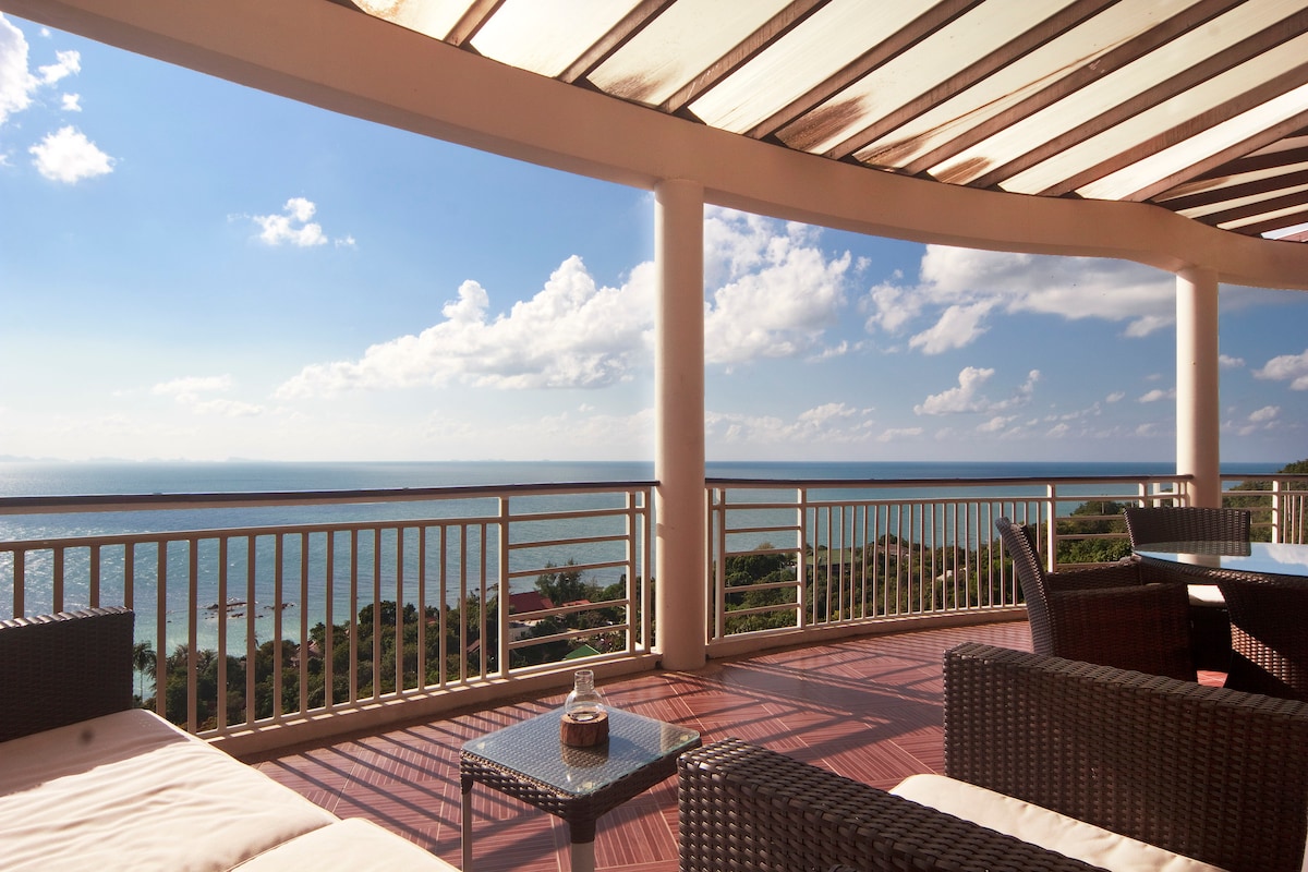 This Penthouse is located on the top floor of the amazing Sunset Hill Resort's Rose Building on Koh Phangan's West coast. It has 2 bedrooms with ensuite bathrooms and a beautiful living room and large panoramic sea view terrace with sun loungers as well as full kitchen. Two sandy beaches are within walking distance (free shuttle service available). Contact us for great discounts on weekly and monthly stays!