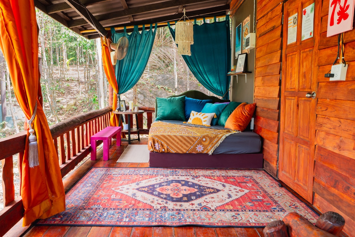Eco Jungle Bungalows overlooking Haad Salad, nestled high in the mountain forest, immersed in the sounds of birds, wind, and pure island nature. Each bungalow includes a double bed, private bathroom with hot shower, mosquito net, balcony, and hammock. Naturally cooled by jungle shade and fresh breezes (no A/C). Just 3 minutes from Haad Yao and Haad Salad beaches. Guests also enjoy free access to our world-renowned Ecstatic Dance in the Pyramid Shala.
