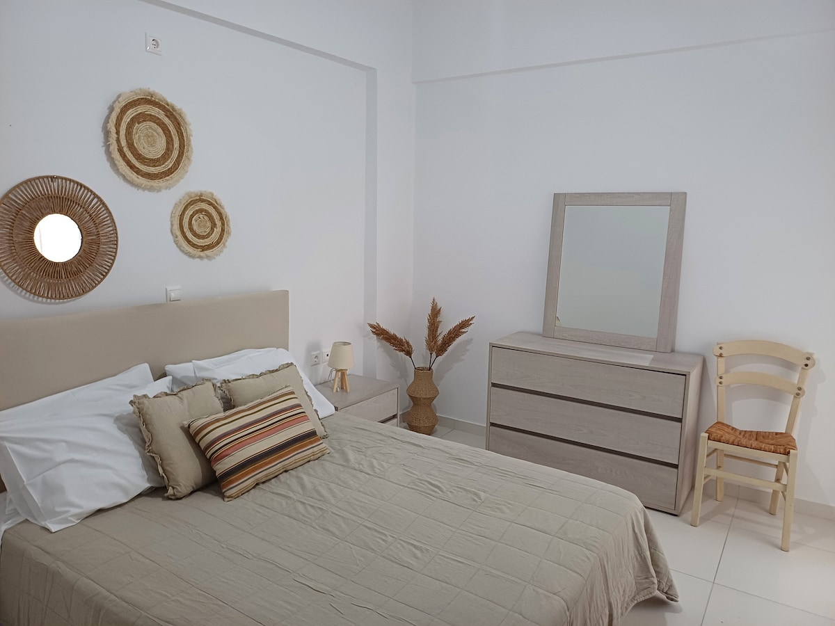 Welcome to Porto Terra – a stylishly renovated deluxe ground-floor apartment (70 m²) in Kokkinos Pyrgos, perfect for families or friends looking for comfort, privacy, and effortless access to the region’s highlights. 📍 300 meters from the beach 🛏️ 2 bedrooms & a sofa bed 🍳 Fully equipped kitchen ❄️ Air conditioning in all rooms – Wi-Fi – 43’’ TV 🌿 Private courtyard for exclusive use 🚗 Free parking nearby 🔐 Self check-in / check-out 🎯 Perfect for families & friends