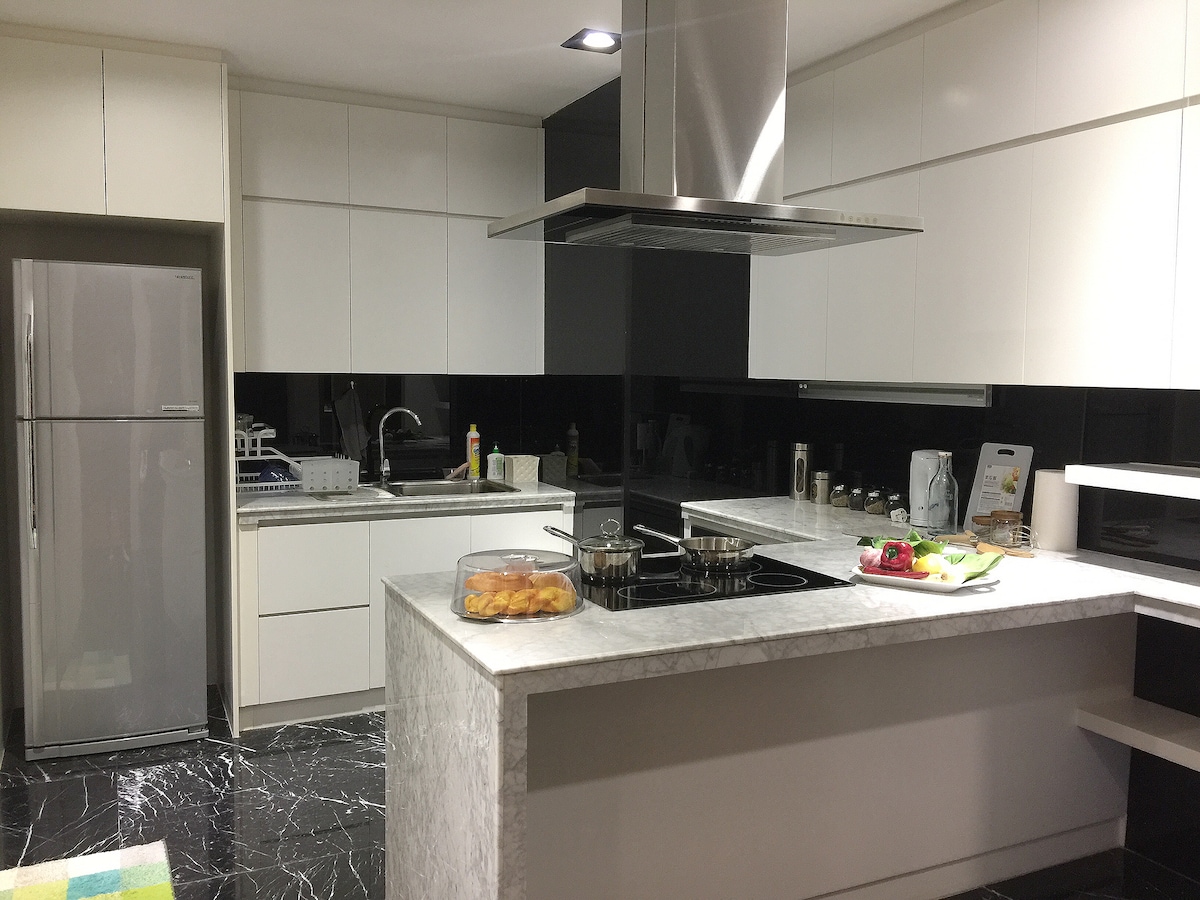 Relax with the whole family at this peaceful place to stay. This apartment is just a walk a way to restaurants, supermarkets and launderette making this an ideal place to stay short / long term. The apartment is self contained, with cooking utensils as well as a children friendly cutlery for your little ones. The apartment located on the 1st floor. It comes with 2 bedrooms and 1 common area resting area Our Facilities: swimming pool park (facing) basketball court Children Playground