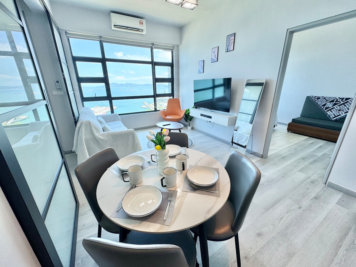 15th floor Jesselton Quay Citypad Tower 2 Apartment has stunning ocean and sunset view, centrally-located near waterfront, close to all popular locations. FREE Parking First Come First Served , WIFI, TV box Downstairs to 24H convenience store, restaurants 3 min walk to Jesselton Point Jetty 5 min walk to Suria Sabah Shopping Mall 10 min walk to Gaya Street (food & night market) 10 min Grab to Waterfront bars & clubs 13 min Grab to imago Mall 20 min Grab to Airport