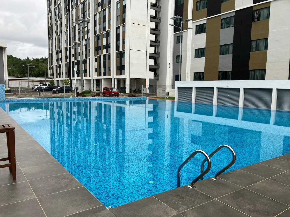 Relax with the whole family at this peaceful place to stay. This apartment is just a walk a way to restaurants, supermarkets and launderette making this an ideal place to stay short / long term. The apartment is self contained, with cooking utensils as well as a children friendly cutlery for your little ones. The apartment located on the 1st floor. It comes with 2 bedrooms and 1 common area resting area Our Facilities: swimming pool park (facing) basketball court Children Playground