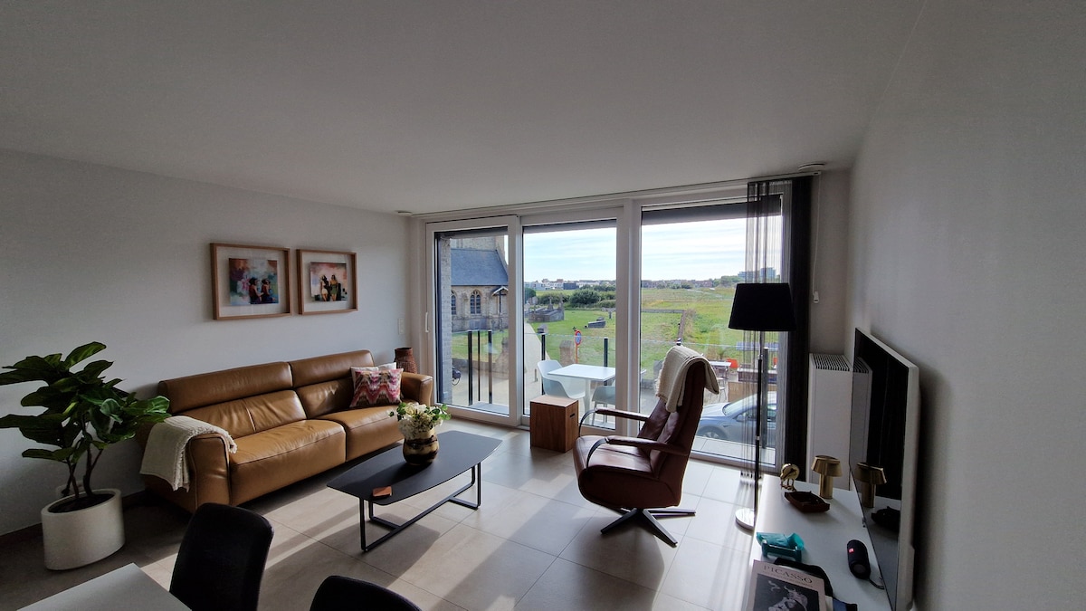 位于米德尔凯尔克(Middelkerke)的舒适单间公寓,可欣赏正面海景