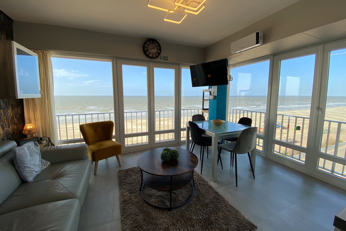 Our top floor renovated apartment on the Zeedijk at Koksijde/Coxyde offers stunning views of the beach and the dunes. This is a light and airy apartment with full-length windows in the front and back. Its located in Koksijde-Bad, between Sint-Idesbald and Oostduinkerke. As a home away from home, it has been equipped to enjoy a comfortable stay always. For example, our fabulous robot vacuum cleaner! Its a godsend when the kids and we come back from the beach and mess up the place....